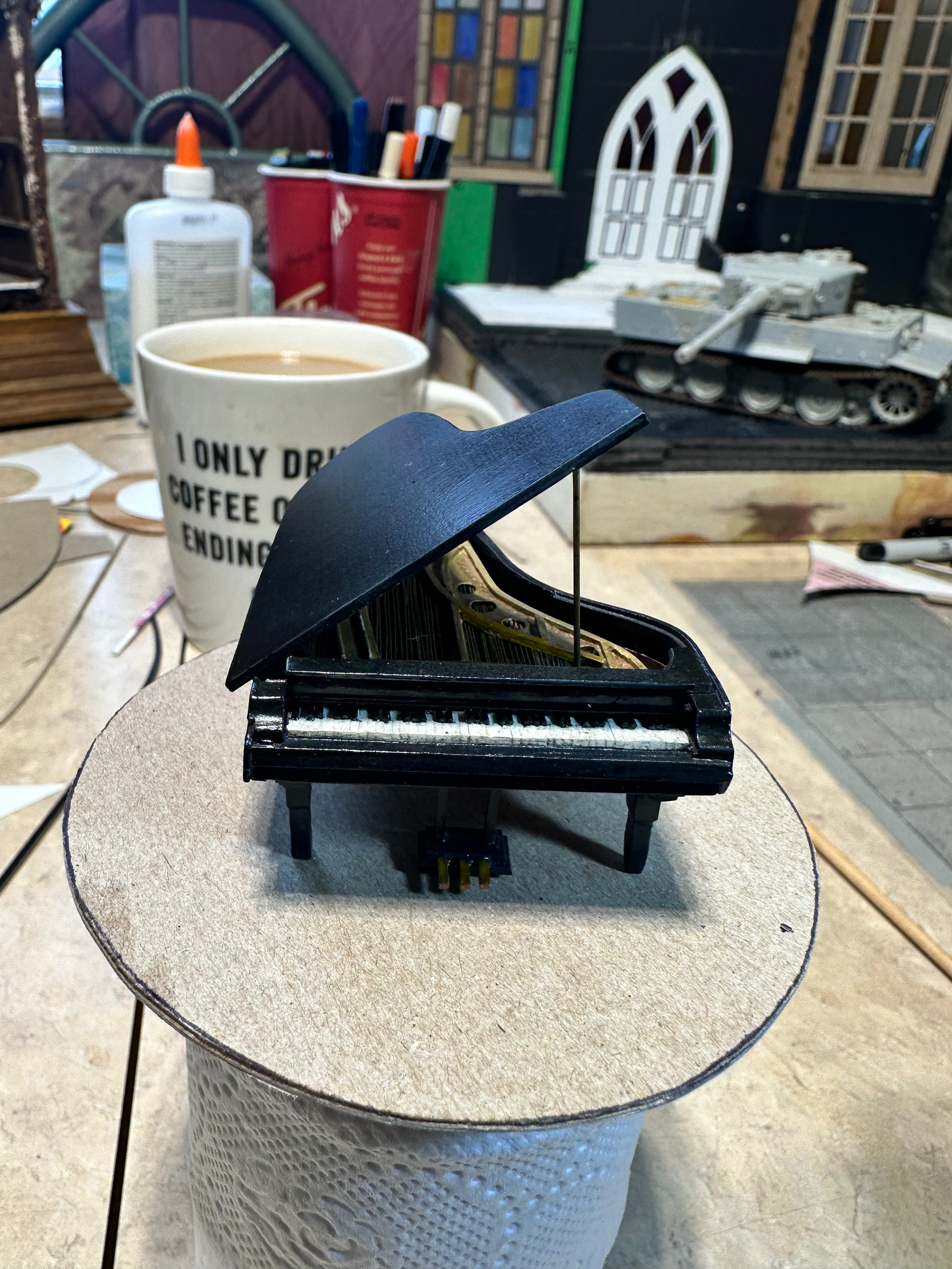 So good to browse this epic again, don’t take this the wrong way but it looks even better than I remember it . And I’d certainly forgotten you’d already mastered 1:35 stained glass. The brilliant piano – kit or scratched?