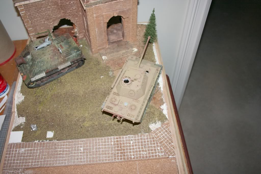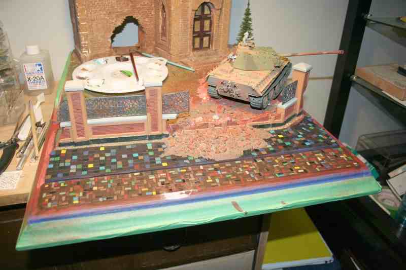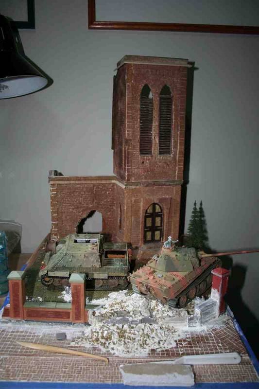 While I’m waiting for the paint to dry… or the watched pot to boil… or the snow to stop falling etc.etc.etc.. I thought I’d spend a short time here to put some pix of my first large diorama that is on the archived pages. I wont bore anyone with a long winded backstory, or step by step… just a slew of pix that will give most everyone a glimpse into the wild wild world that is my inner self; a builder of enormously huge vision, who often flies by the seat of his Khaki pants. A dreamer and a free thinker, who sometimes lacks the necessary planning and wherewithal to make his internal thoughts come to life on 35th scale. So without any further Adieu, let the fun begin…