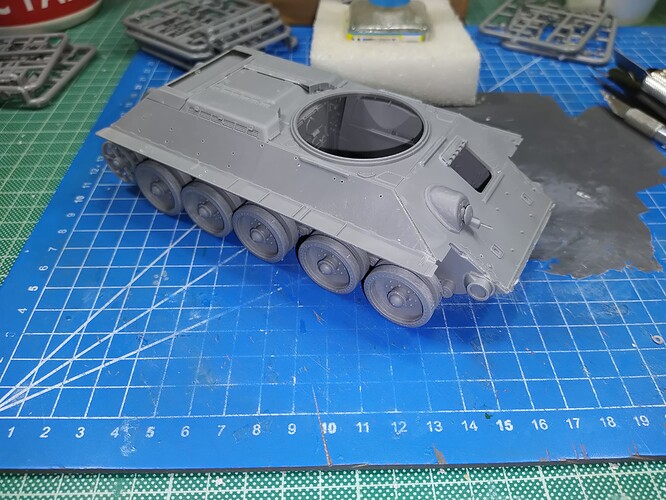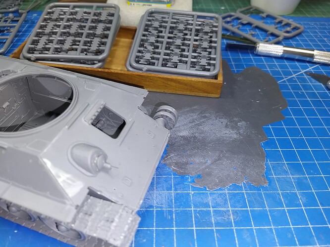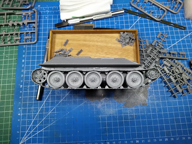 Nice build so far! What is your plan for painting-weathering versus the tracks-assy? I faced lot if challenges when building mine as there was a need for an extra link which is not possible (have to use a pair). Finally had to reposition the idle wheel a bit to so the job.