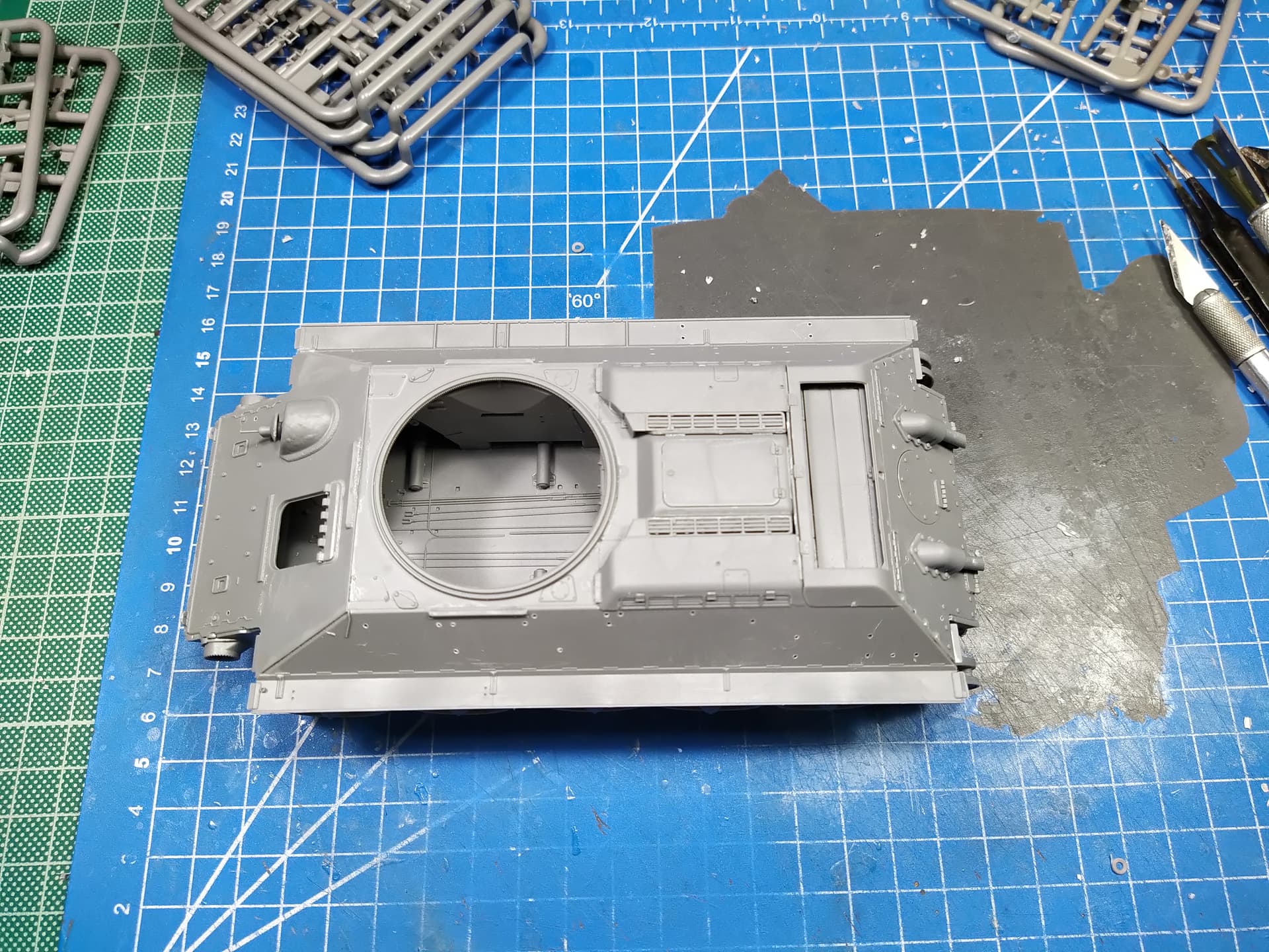 The engine deck parts were easy to install. I am generally leaving out the detail parts for after the basic hull assembly and the track/wheel/suspension assembly.