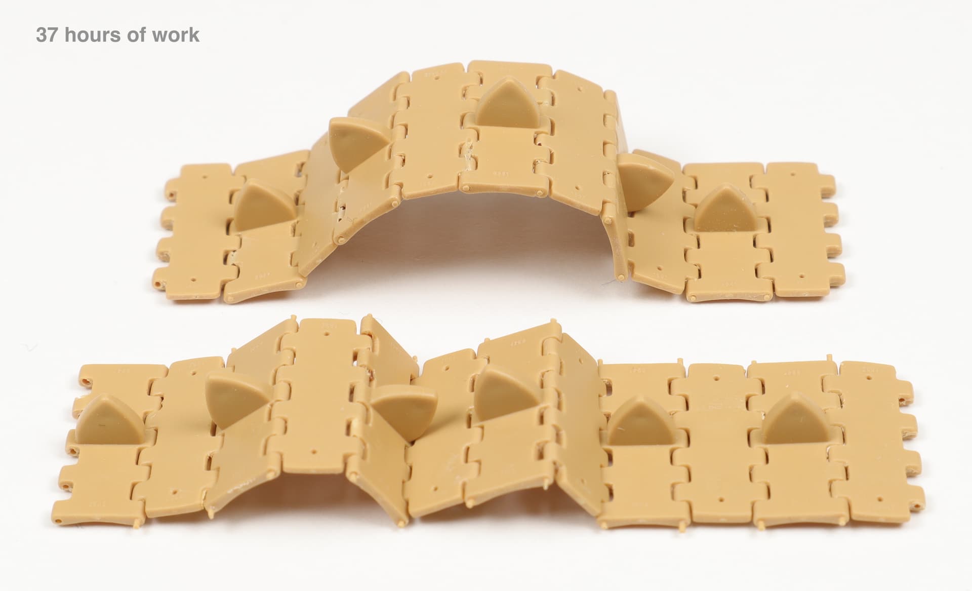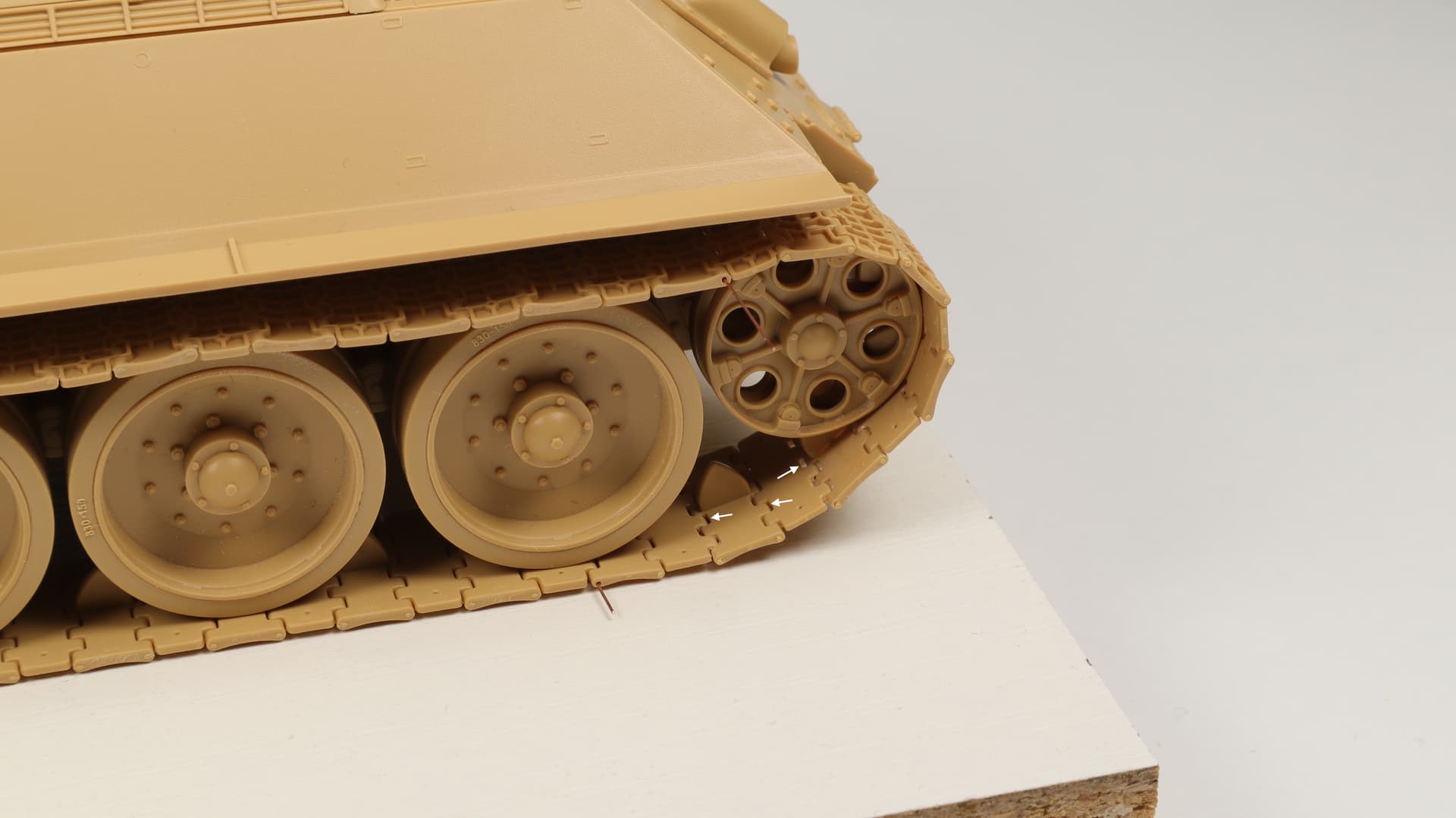 - On idler wheels, the section is too long. I’ll have to move the idler wheels forward a bit. With glued sections, this will be very difficult to do. And with working tracks - very easy. Moreover, I did not glue the crank itself completely, but only grabbed a couple of microdroplets of glue.