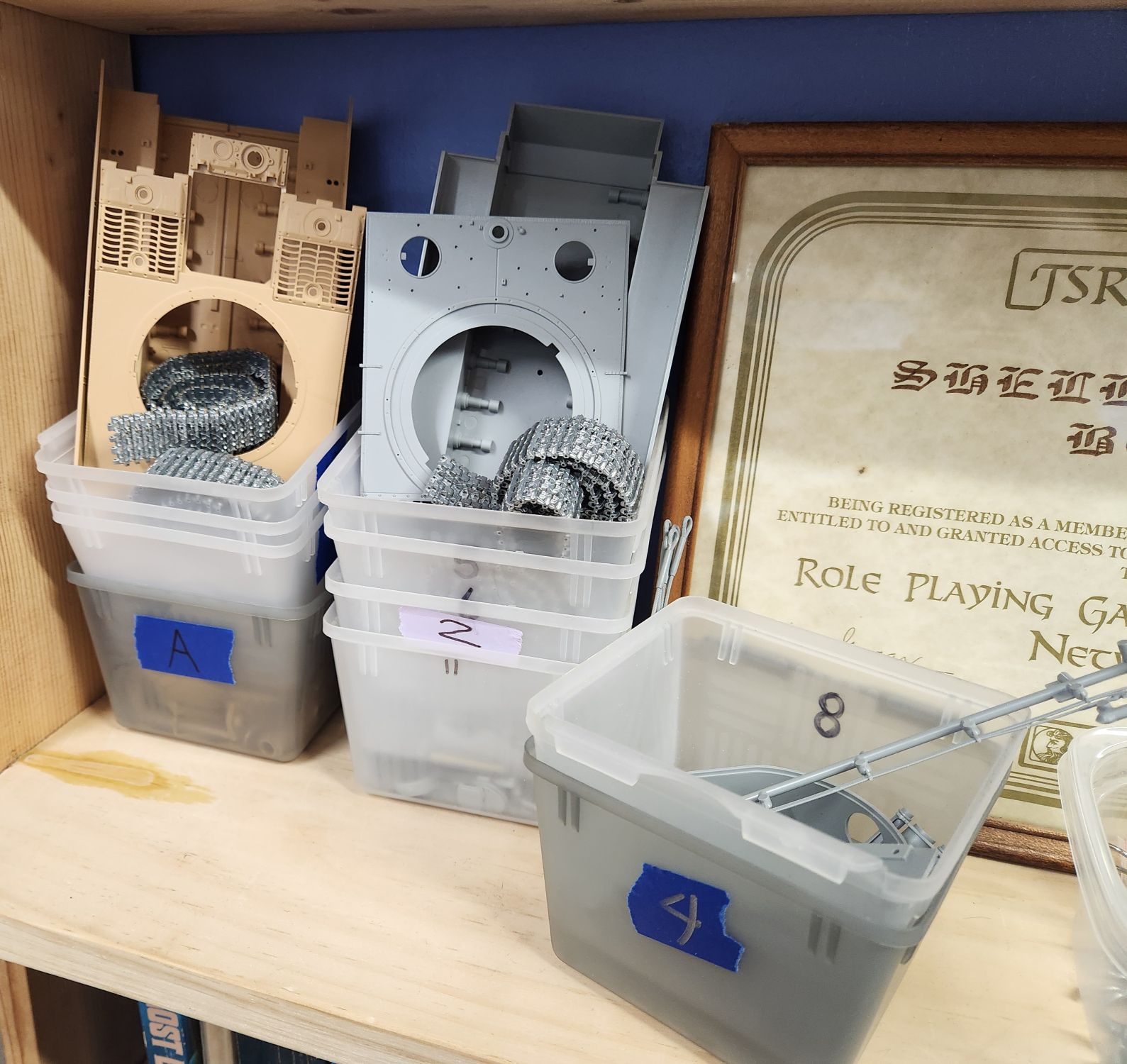 Another reason I detach out of the SbS sequence is if a whole bunch of parts need the same custom colour painted, easier to do them all in one go. And obviously individual track links need somewhere to stay for a night or two while they’re being detached/prepped.