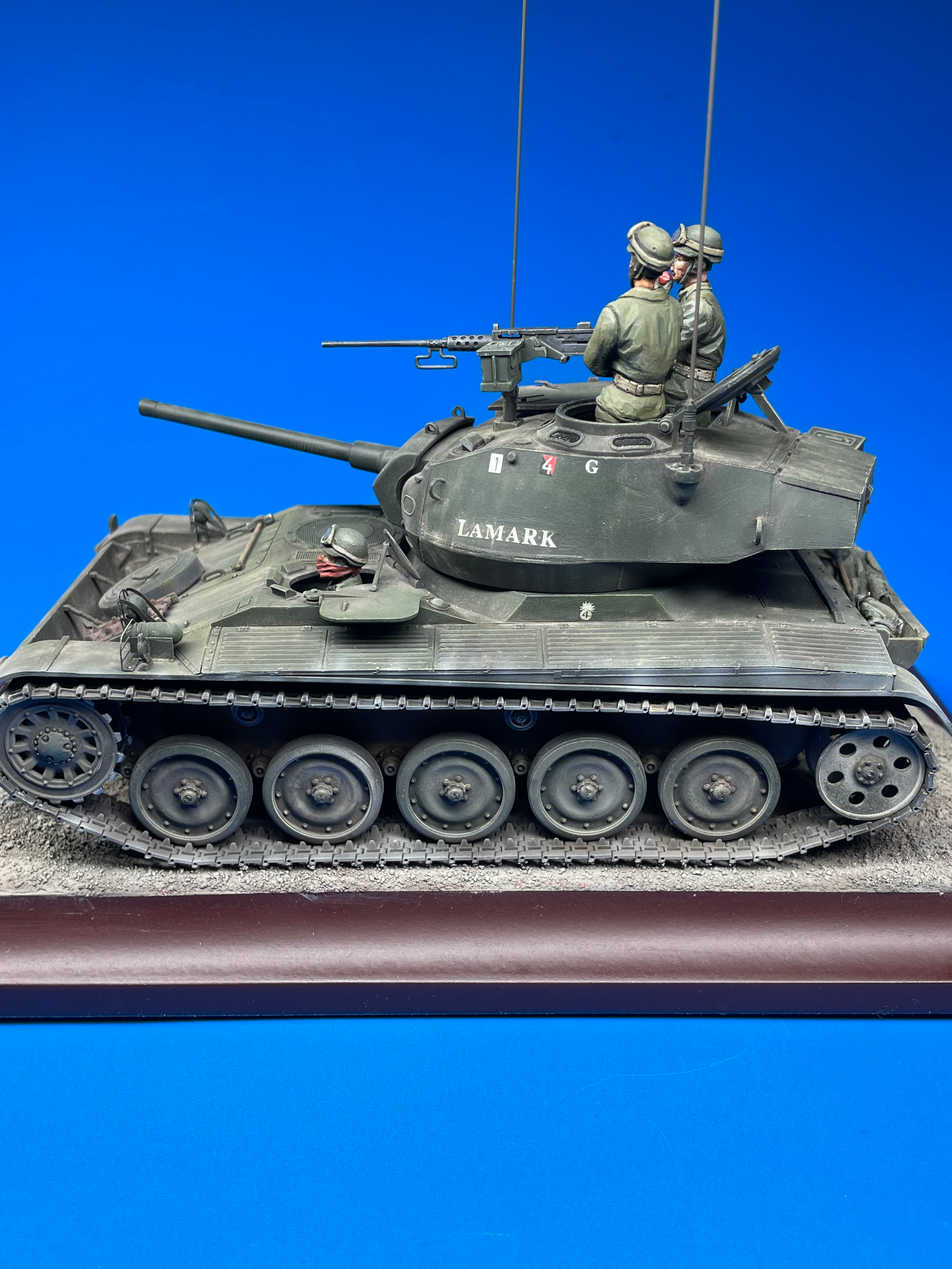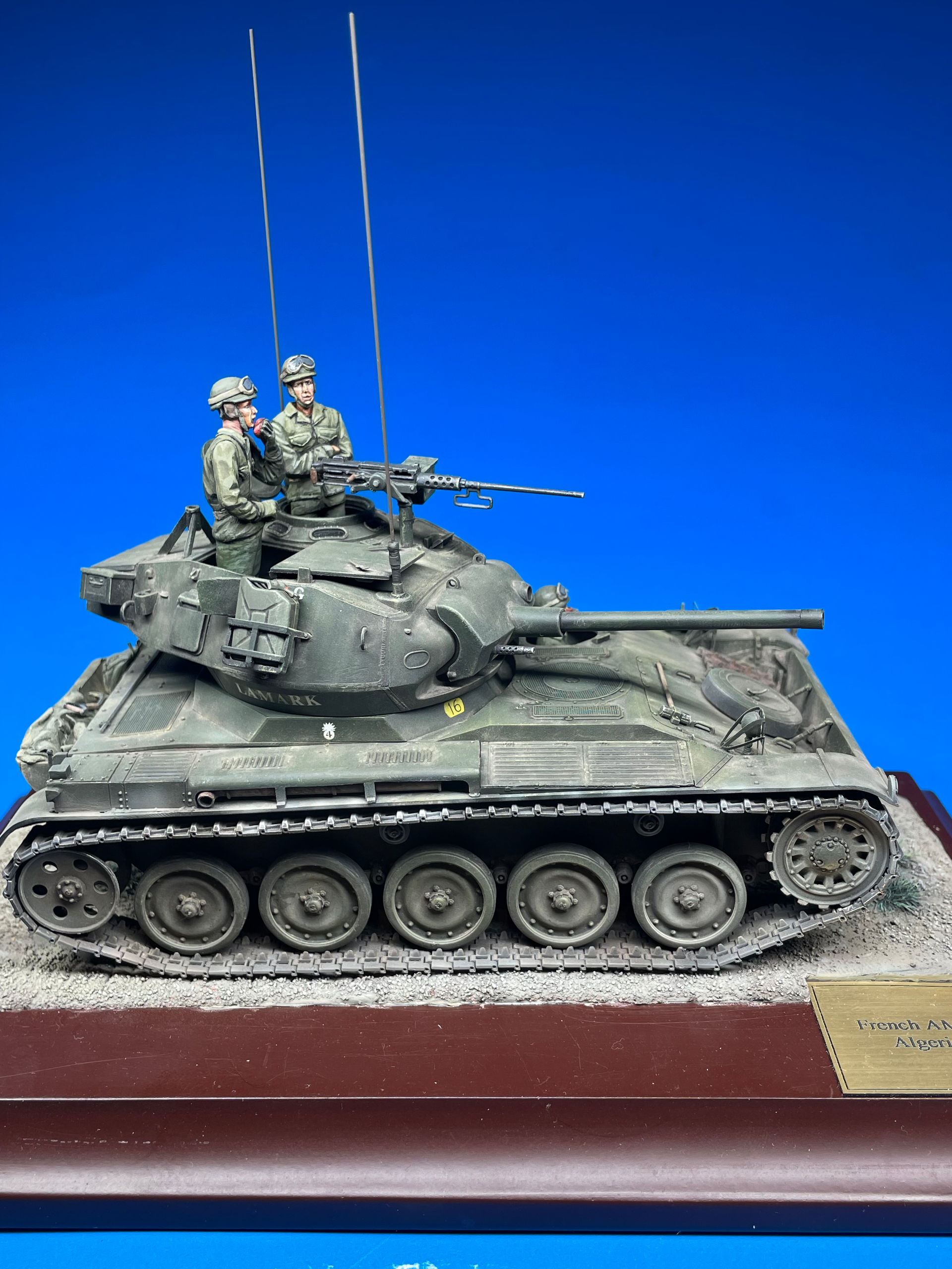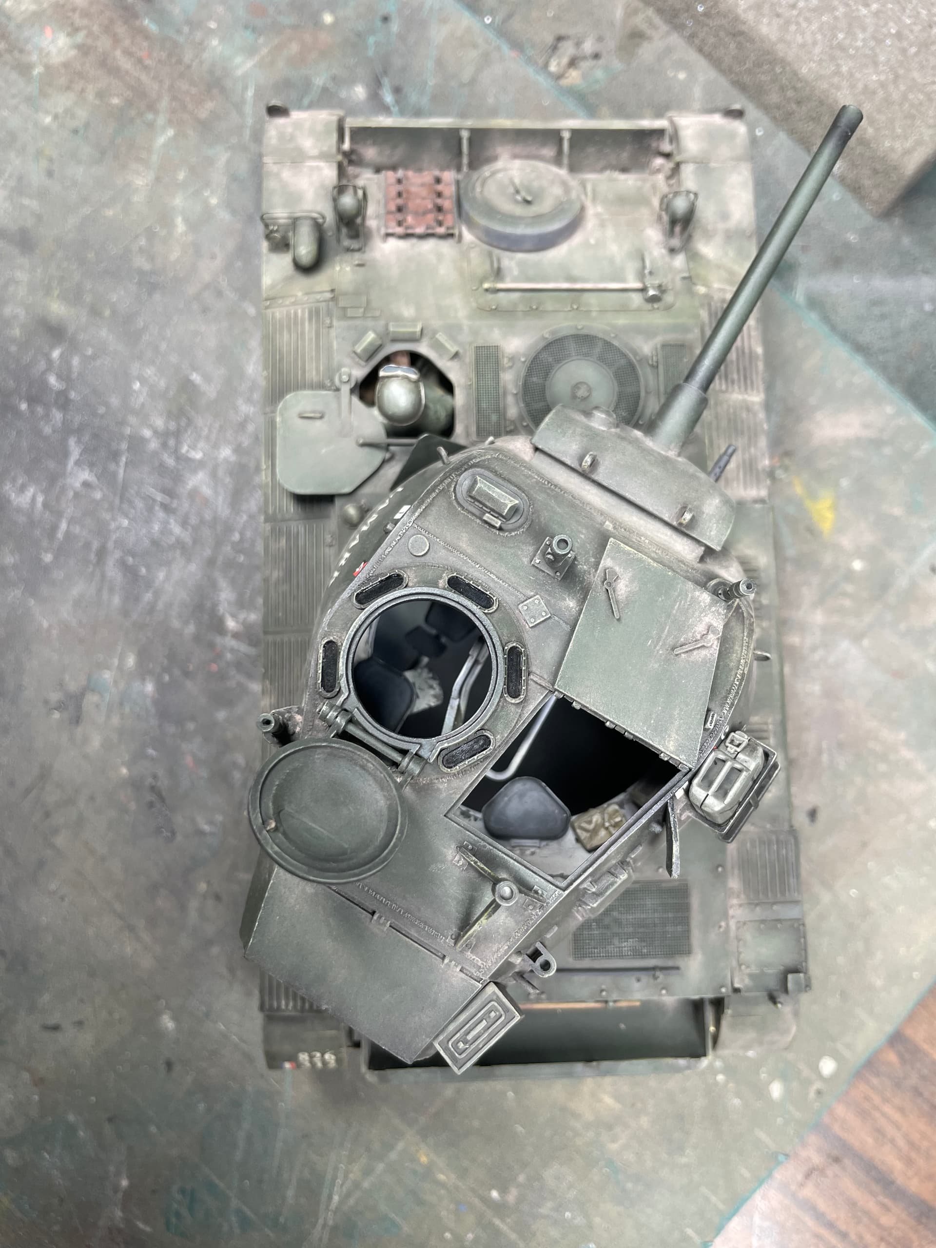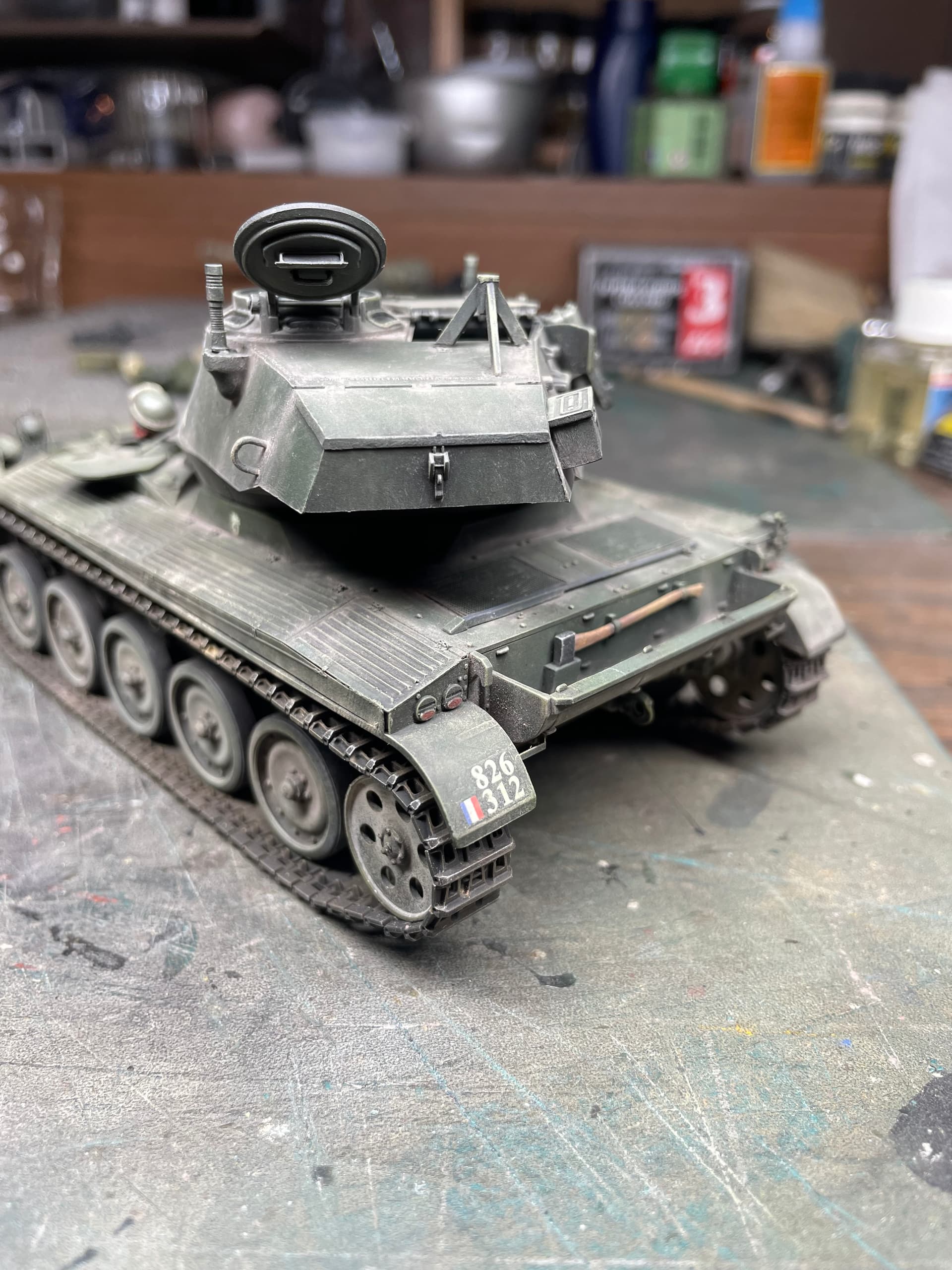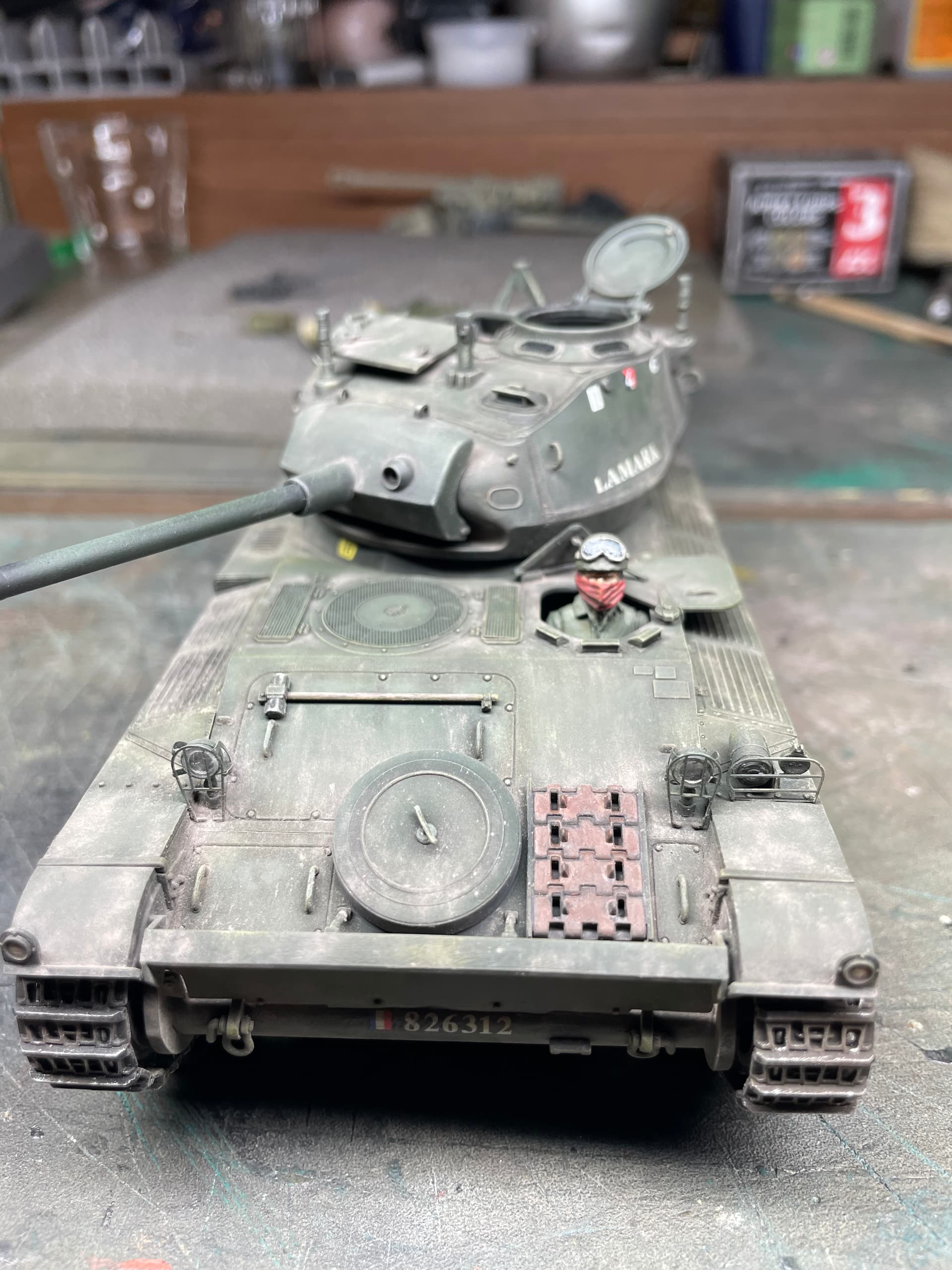 Thanks Olivier. I still have some more weathering to do. I’ll post pics when I get home; these pics show the wash application. I did an extensive dusting of the whole vehicle but mostly on the lower hull and running gear. I actually made a mistake on the idler wheel by spraying too much MiG dust product on it, I’ll tone it down some later. I sprayed most of the lower hull and running gear then added different tones with pigments by paint brush. I was going for a dusty look being this vehicle served in Algeria.