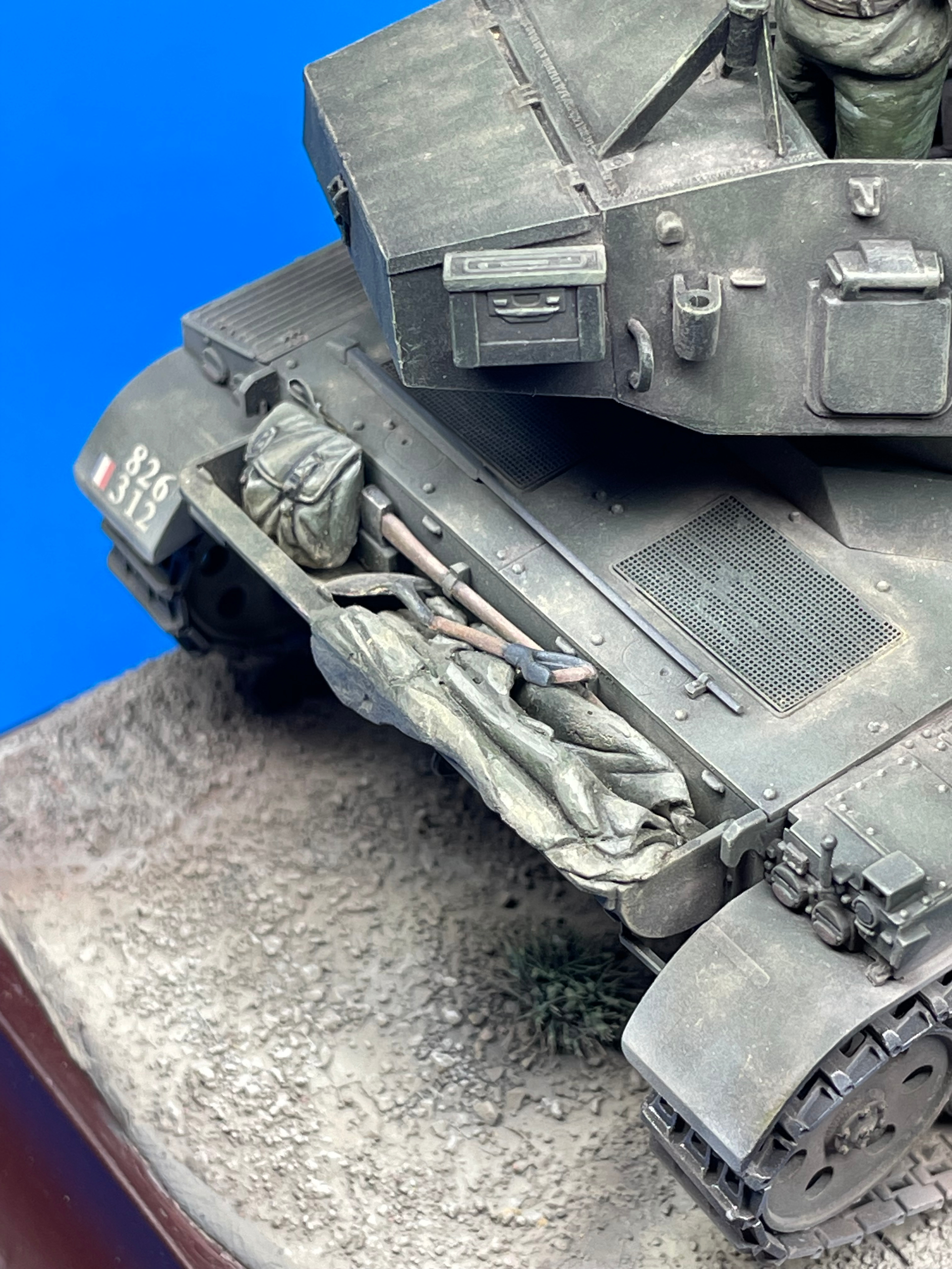 For the periscopes I simply painted the black and added a gloss coat of Humbrol gloss to them. I still have to do some touch ups and add a little more dust here and there. The crew figures have been added as well as some extra gear in the rear bin, I’ll post pics later when I get home from work.