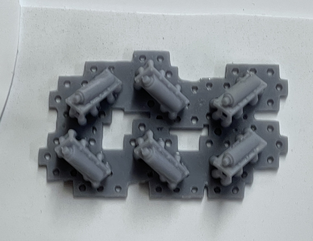 Everthing will be cured tomorrow and I will do any final finishing. I will then glue the barbette portion in place. When that’s dry, the GREAT SPLITTING will take place and we’ll see how it all hangs togther. After splitting I’ll install any angle supports and deck girders (already printed) and then do the priming and painting of this major structure.