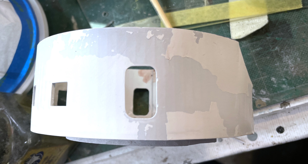 I went aroud with more tape and pulled off as much of it as I could. After this I repainted it with a mix of Tamiya Flat and Gloss White.