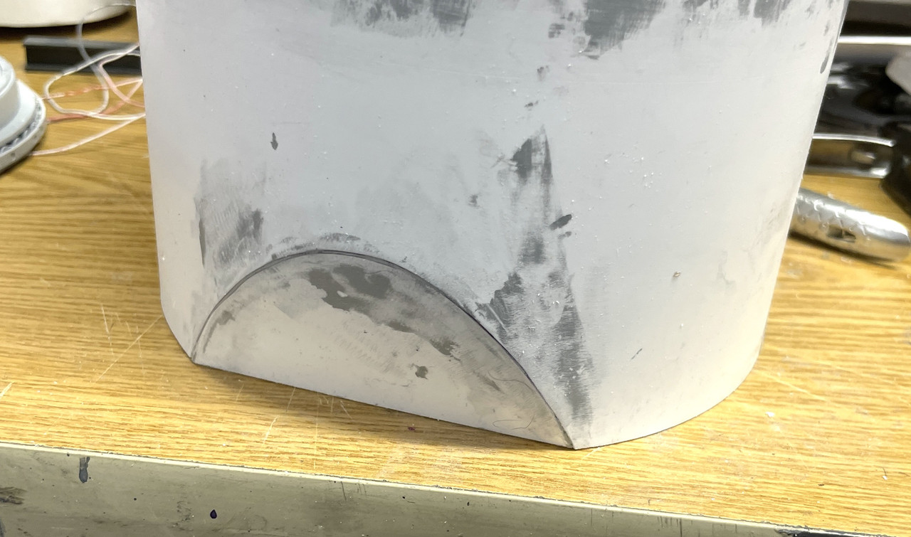 After more sanding with various sanding sticks (wet with water), I filled it with Tamiya Filler and then sanded that when it set up