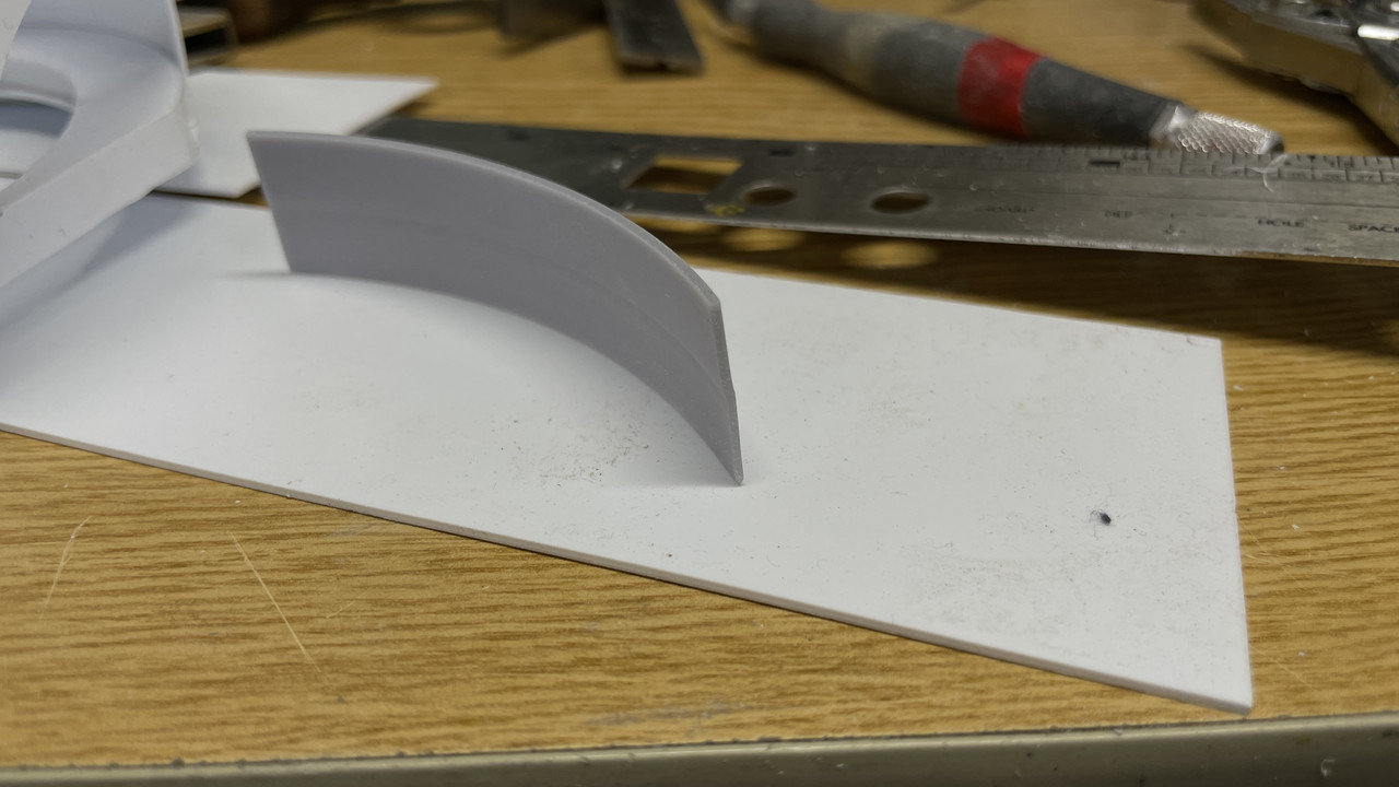 There was some serious modeling going on today. It was like cutting the Hope Diamond. One wrong cleave and all you have is worthless diamond dust. Well… maybe not quite that hyperbolic, but there was a significant probability that I could wreck over two week’s work and about $25 worth of styrene, and I didn’t have more stock to make another one.