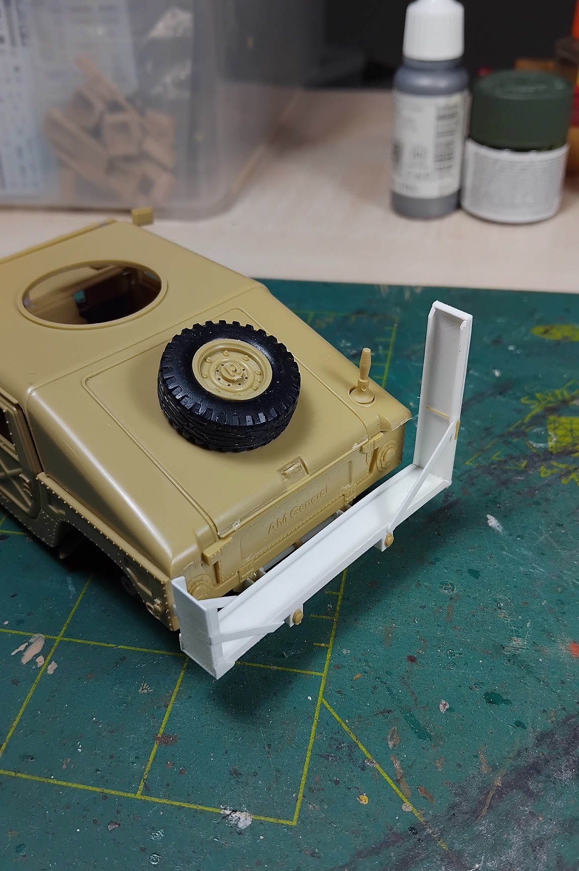 Current status on the M1097. I was informed that the added tailgate was not used as such ( I thought it just looked kind of neat), so it will be removed.