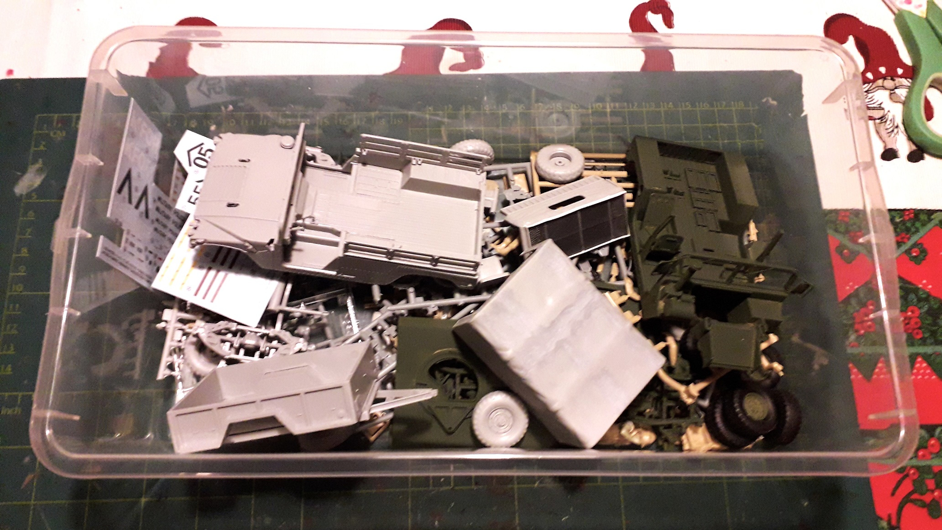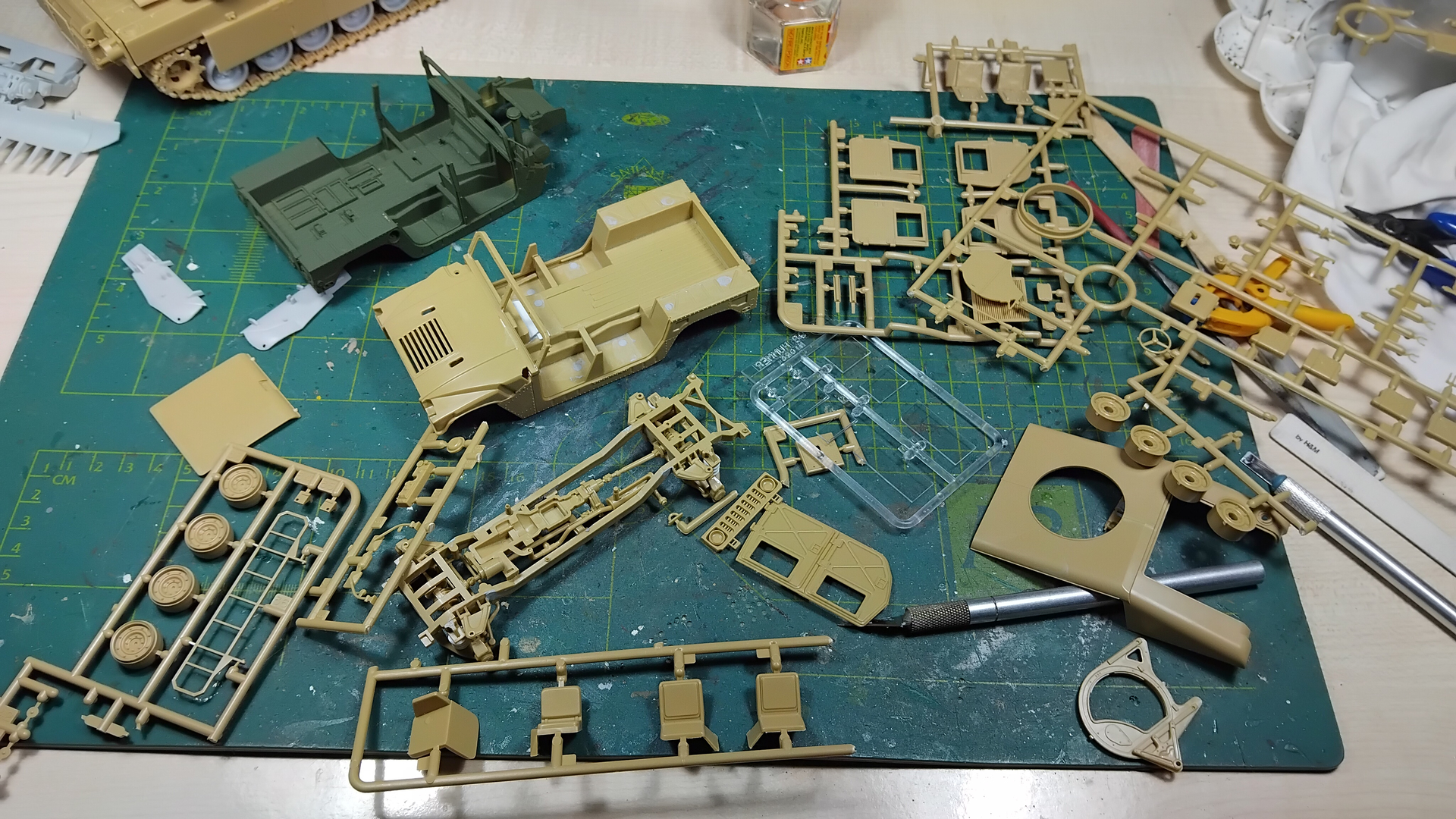 Initially I had only 2 of those planned, but the one from Academy I scraped together from spareparts. The Tamiya one was too good to not build with all doors open, the Academy one far less so.