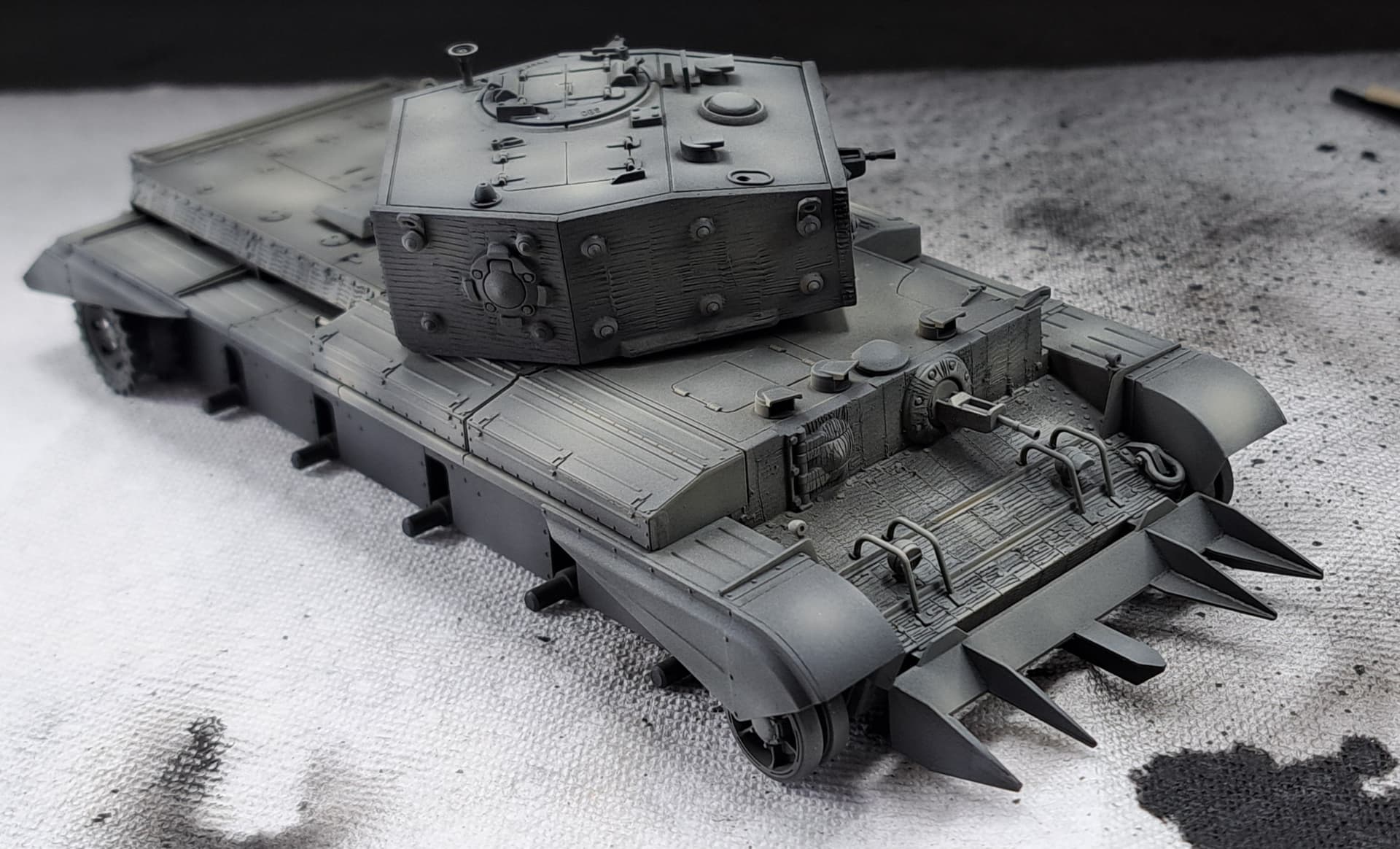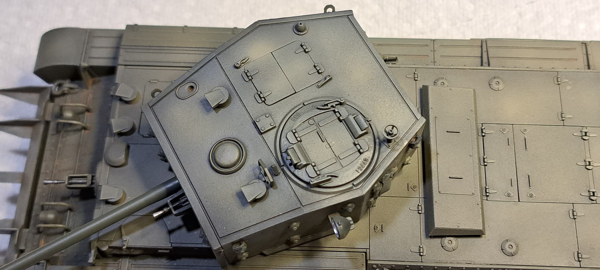 Hope to install Aber main gun tomorrow, wash & dry so the base coat can be sprayed on Friday.