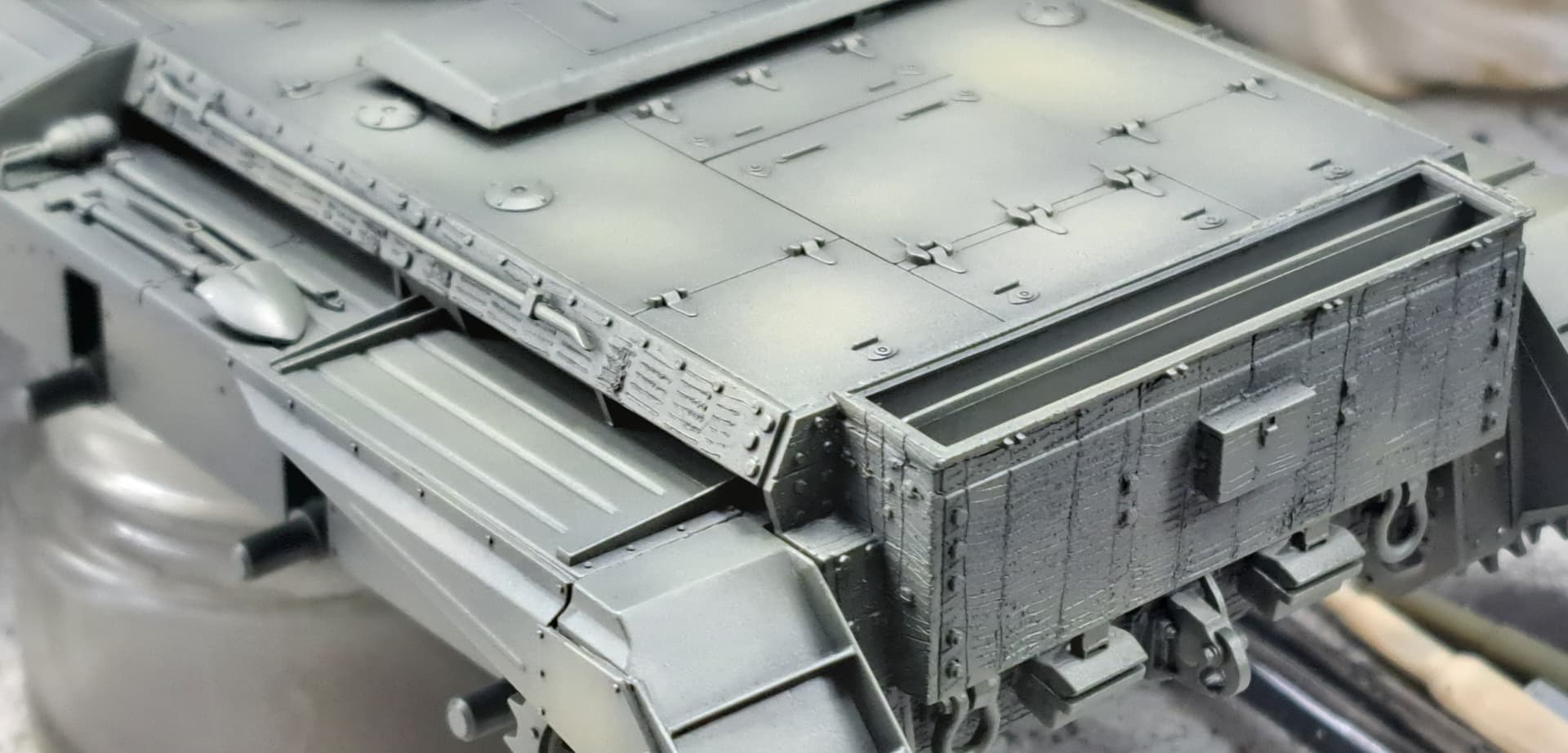 Thanks to the food dehydrator was able to apply a round of oil wash today and drybrush. Will continue after another 10 hours in the dehydrator.