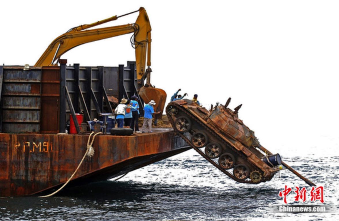 Old Thai T-55 tanks dumped in the ocean to make artificial reefs and/or diving attractions