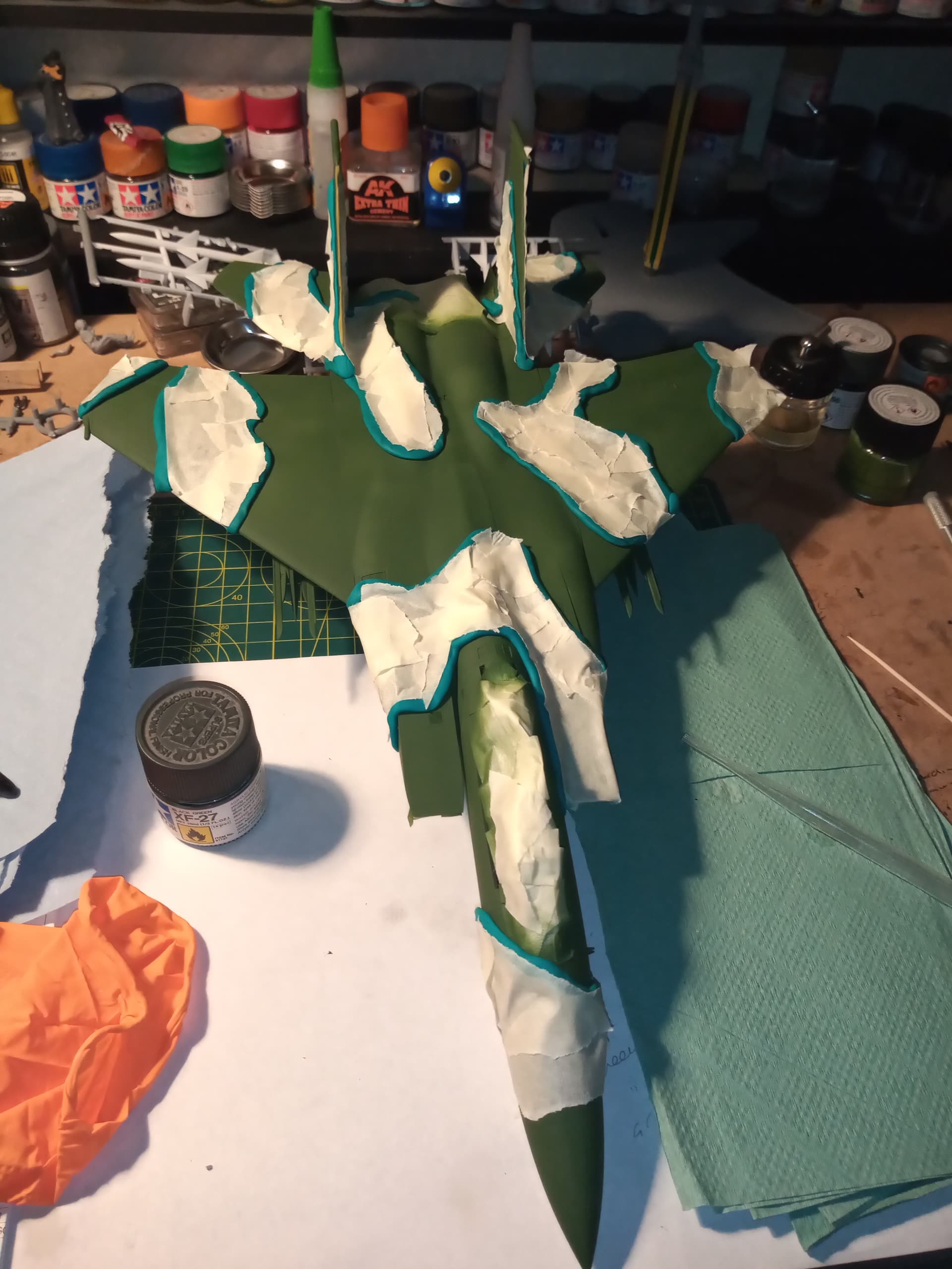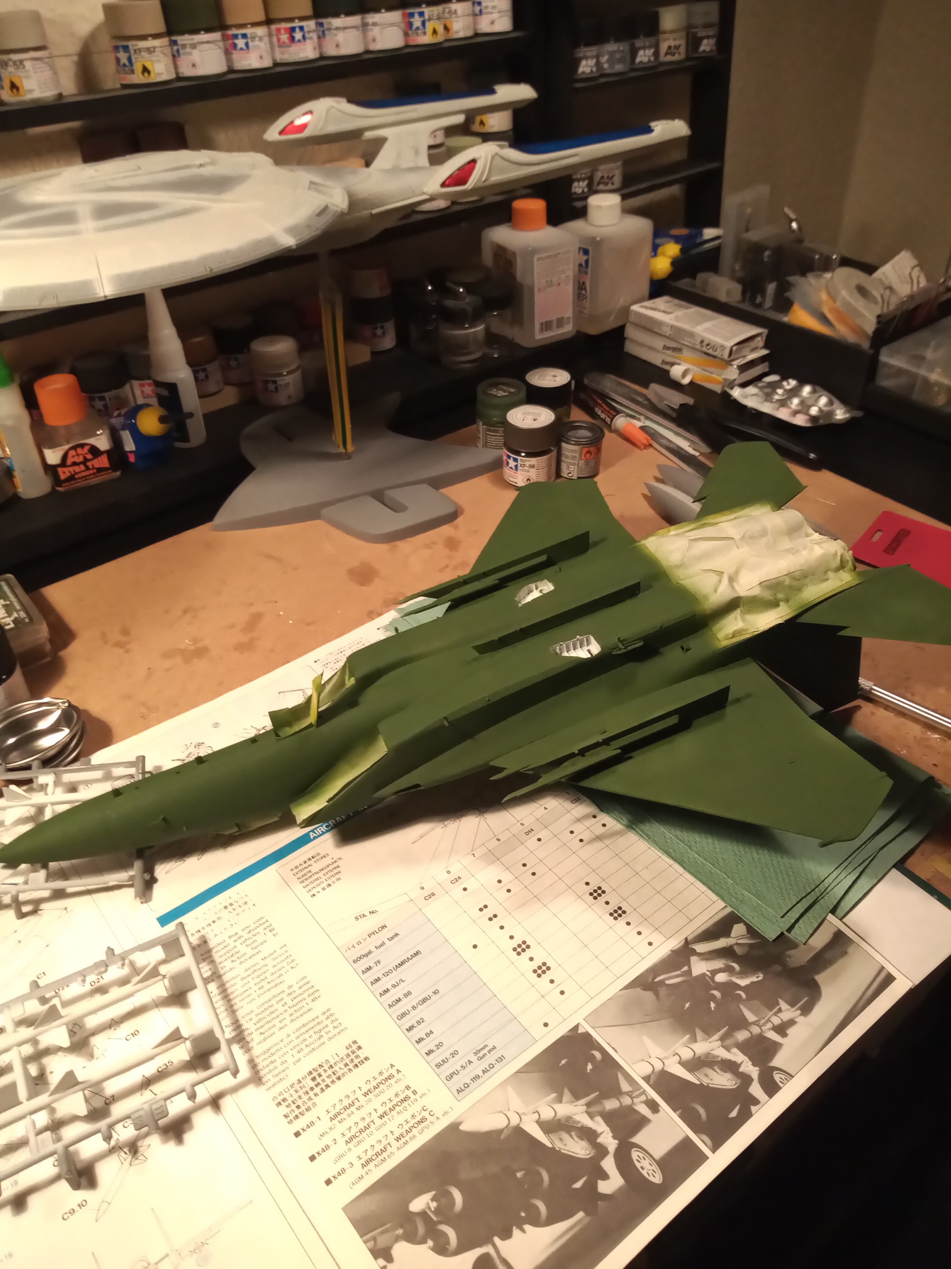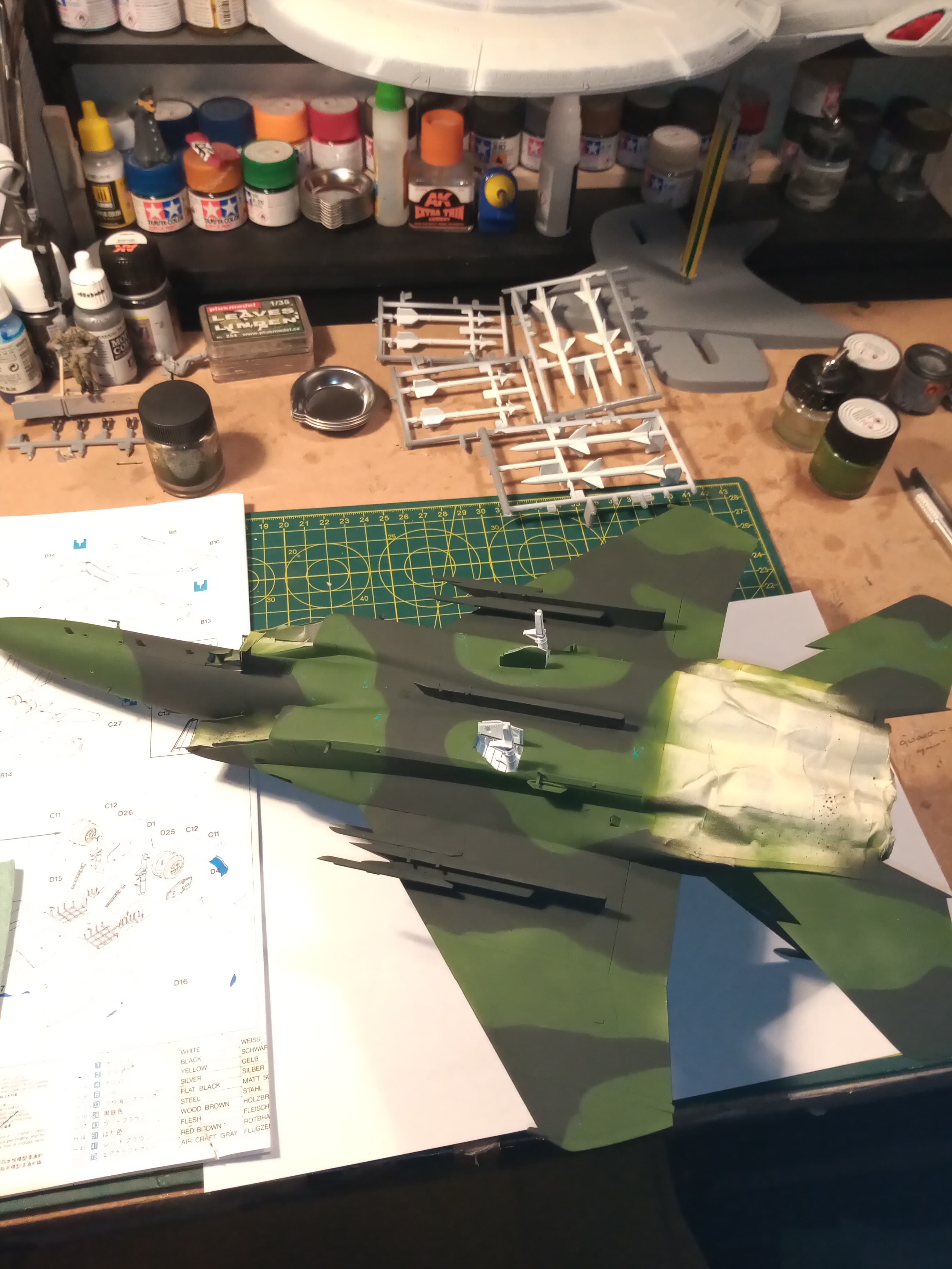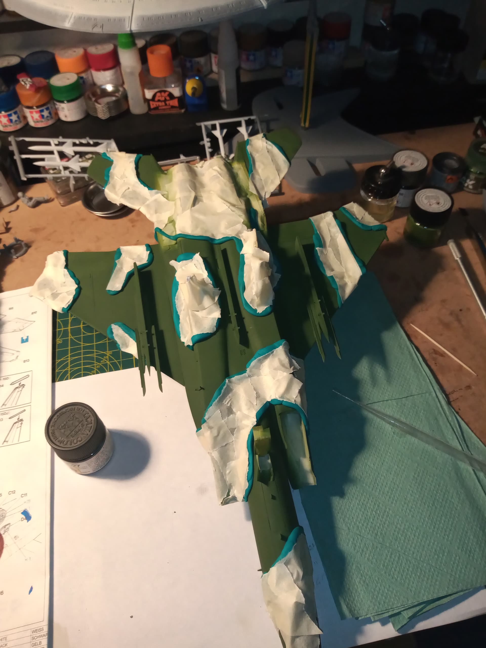 Going to mask up and put a base coat down of the forest green… I’m still not sure about the other green I got with the AK set… It looks to light… The Tamiya xf27 looks darker and more like whats in the images …