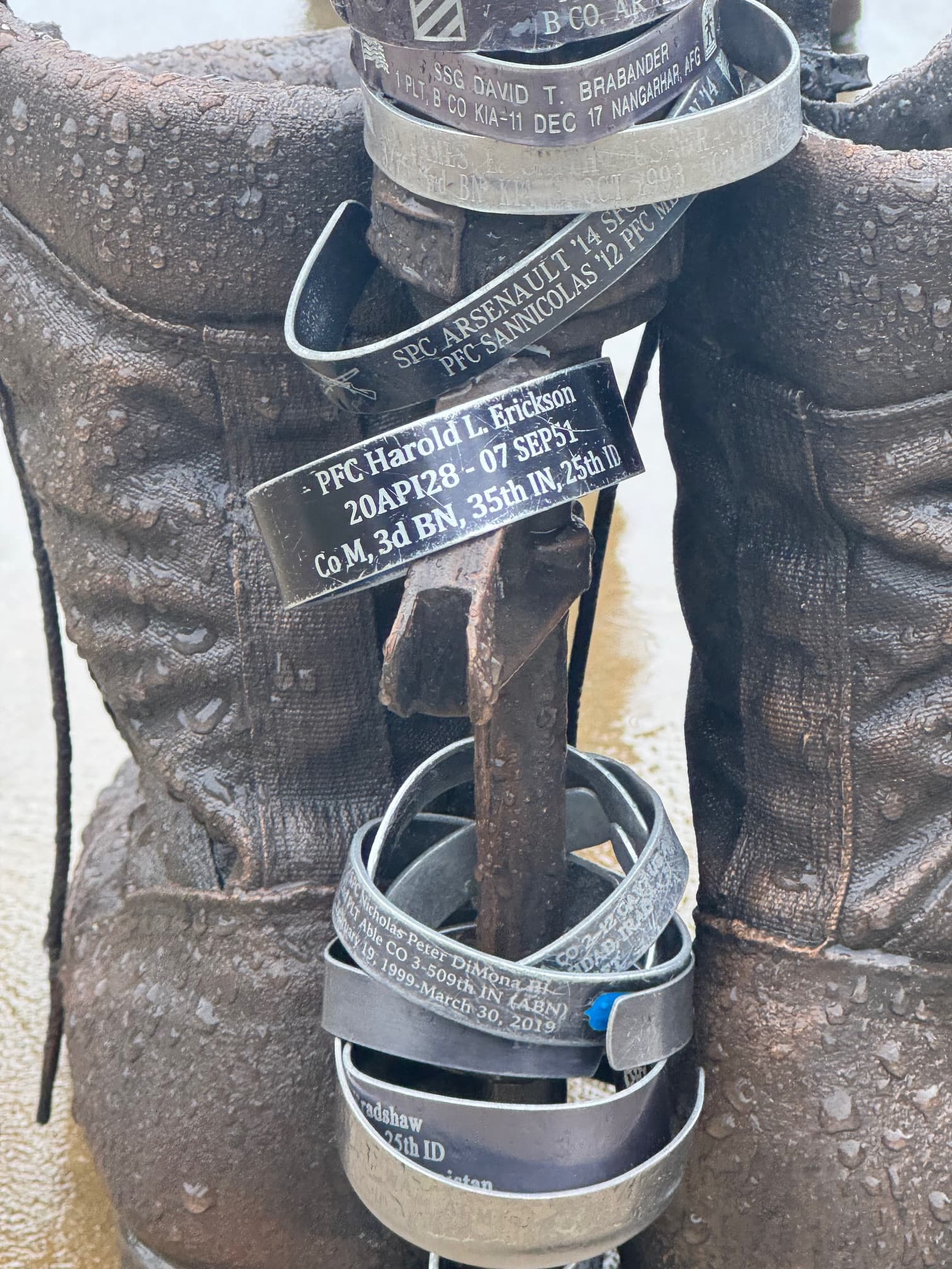 My great uncle was killed in Korea serving with M Co, 3-35 IN, 25th ID. For a long time, me and all four of my boys wore a memorial bracelet for him. My youngest added his bracelet to the Memorial.