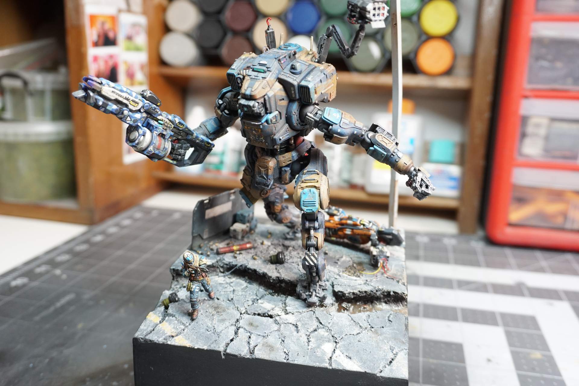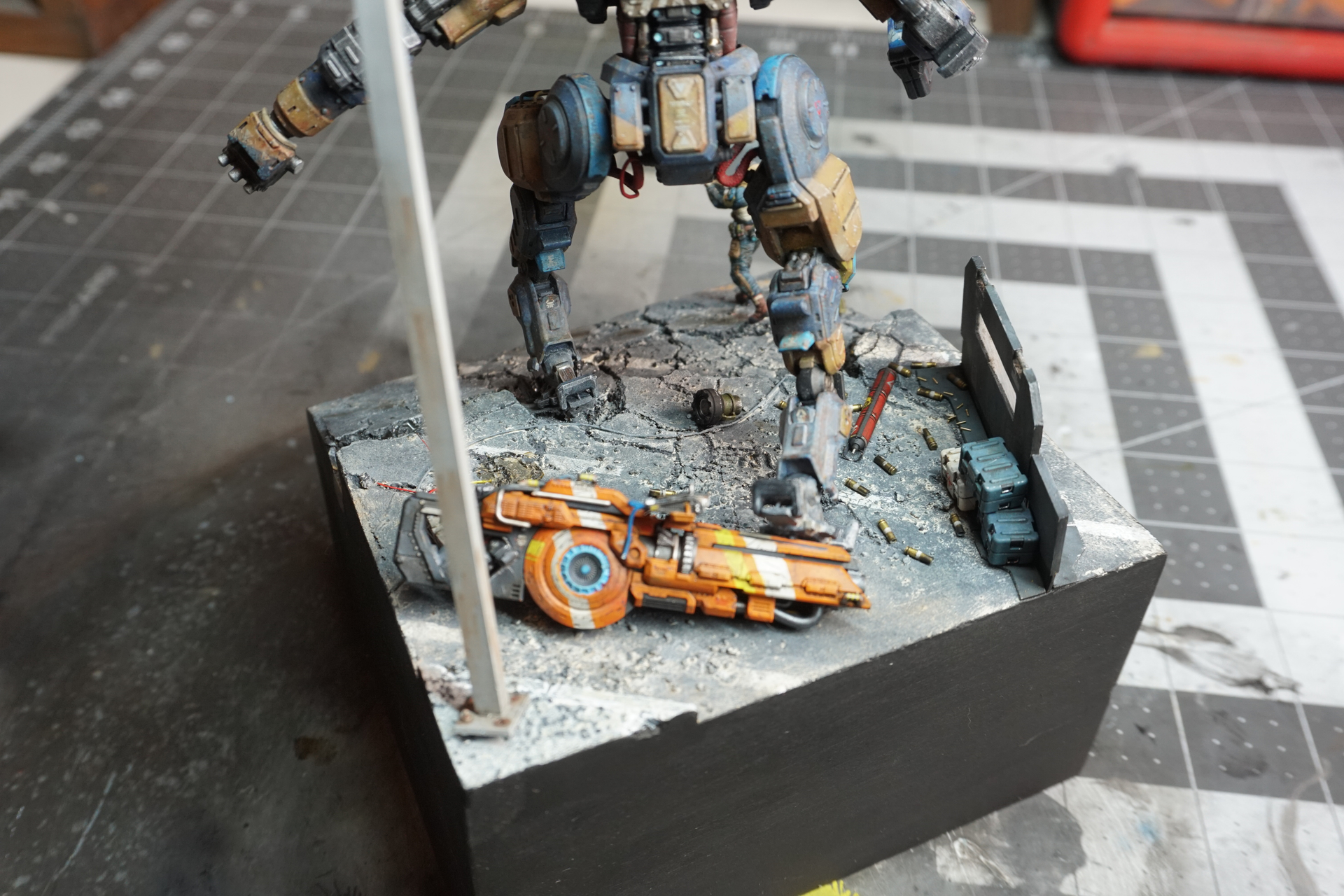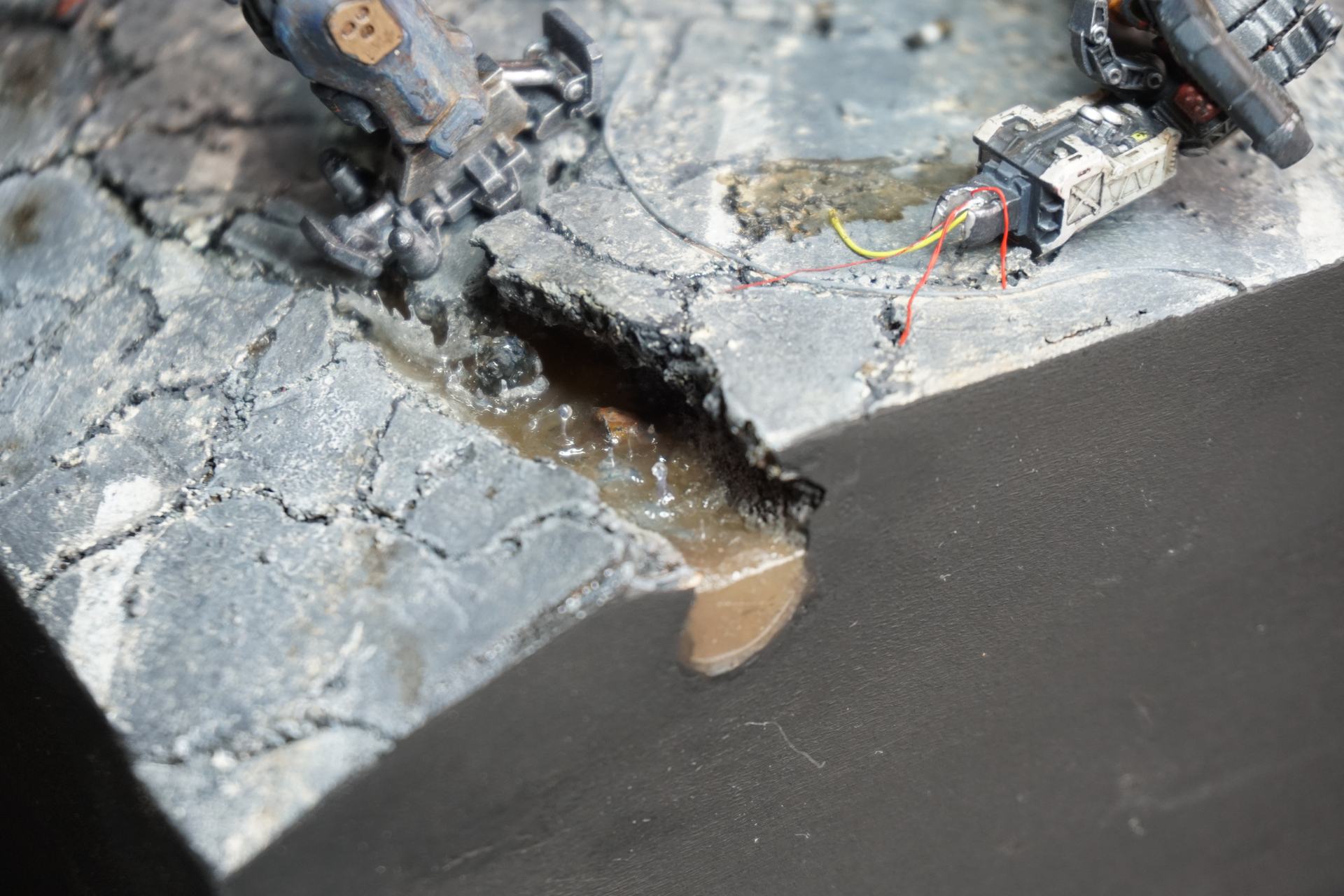 What I am looking for is some advice, as I feel that something is missing. The whole scene is not quite there. Also, I have no idea where to place the upper portion of the destroyed arm or if it should be included at all. Any advice from a fresh pair of eyes is appreciated!