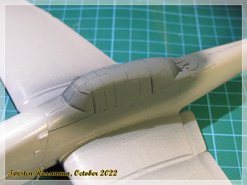 … I have closed the holes for the wing guns again because the kit has 20 mm guns in it, which would be most likely the MG 151/20. In my references I haven’t found that combination yet. As far as I know the Ju 87 D had the MG 17 with a caliber of 7,62 mm in the wings. Have to look further …