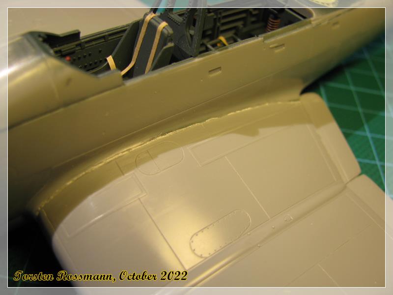 The fitting of the IP cover is strange because it leaves a tiny step on both sides of the fuselage. Have to check my references but I think I have to sand here …