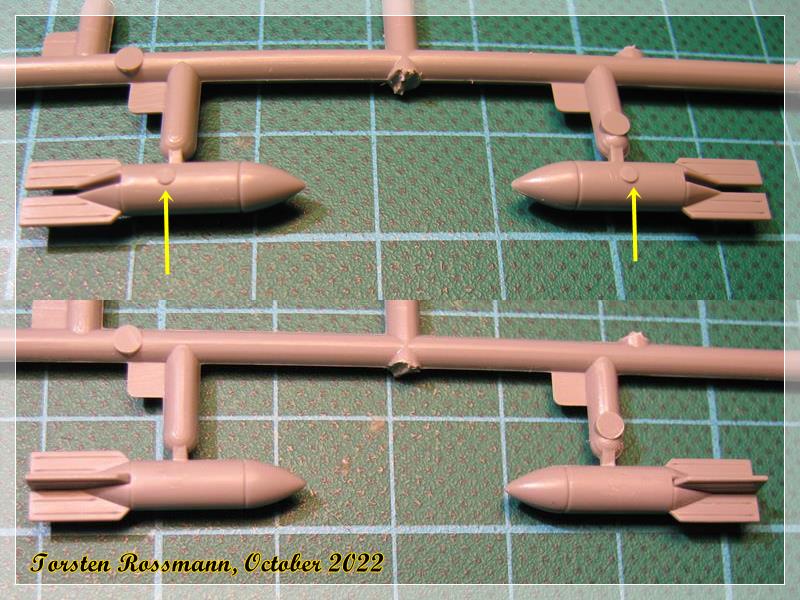 … on Friday I took care of the gull wings and on the inside of the underside are many pre-drilled holes for various Ju 87 versions. I marked the needed holes for my model with a black Edding before drilling them through the surface. The numbers have this meaning: