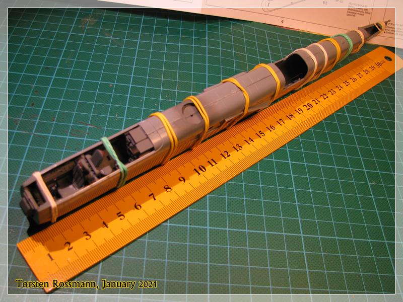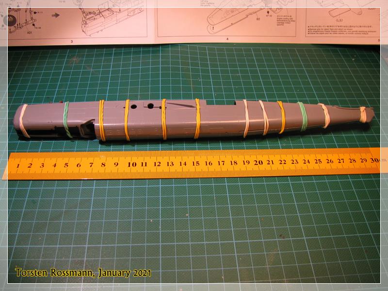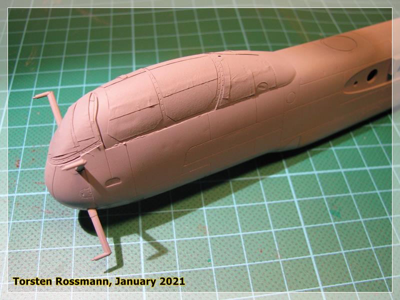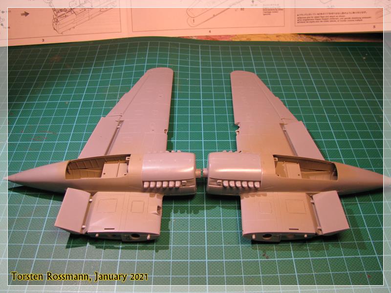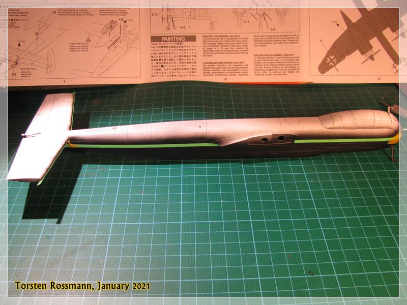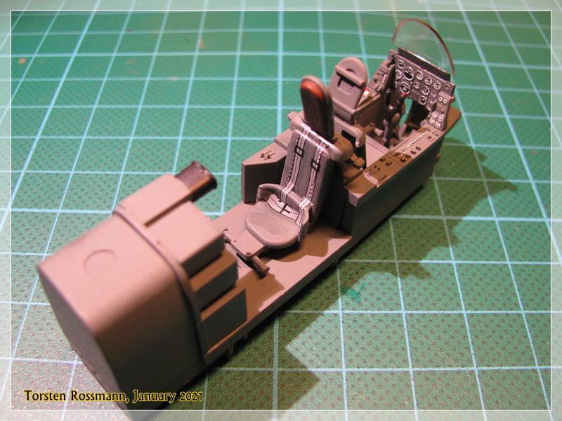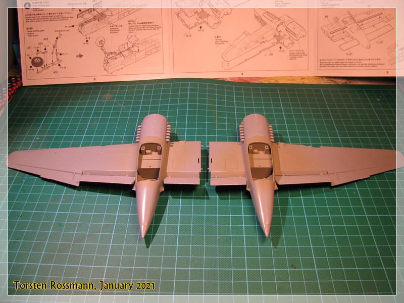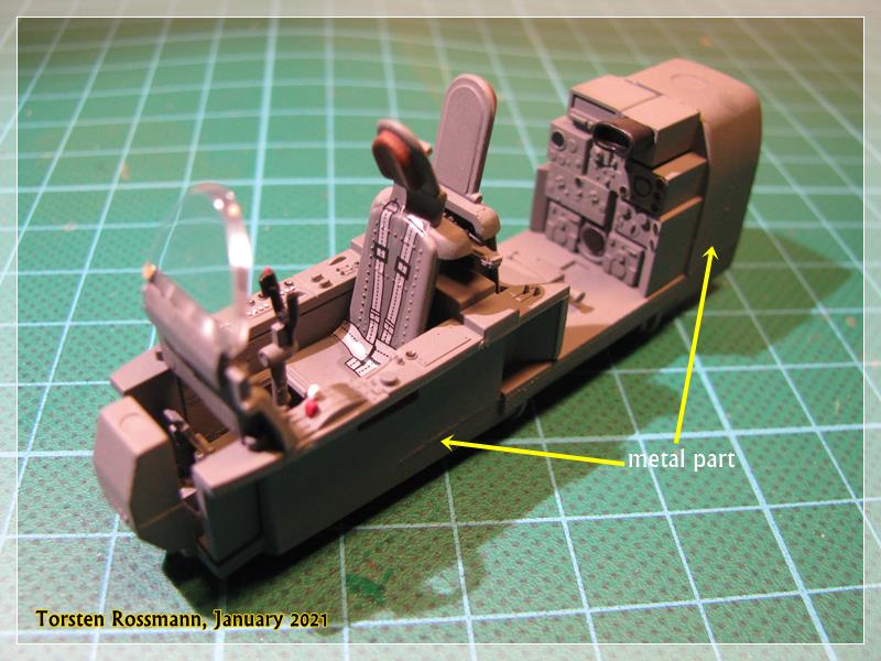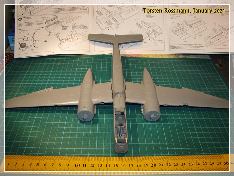 … you have already seen it in the second picture, Tamiya offers the cockpit floor as a metal part as there is not much space for weight in the nose. I hope it will be sufficient, otherwise I’ll try to put some lead balls in the engine nacelles …