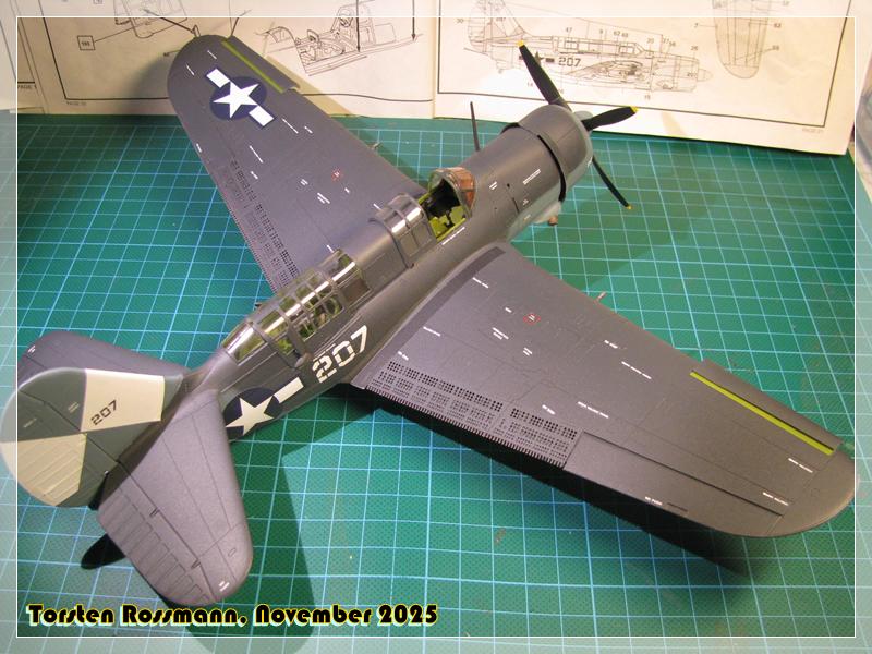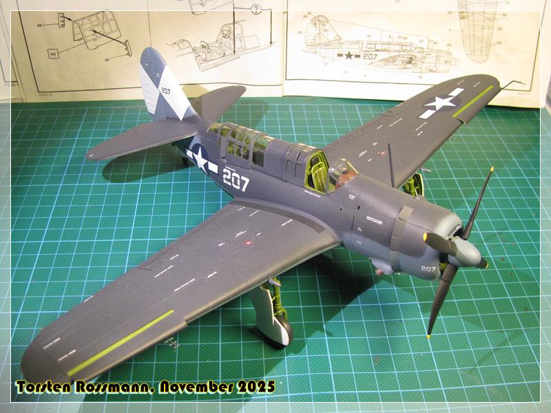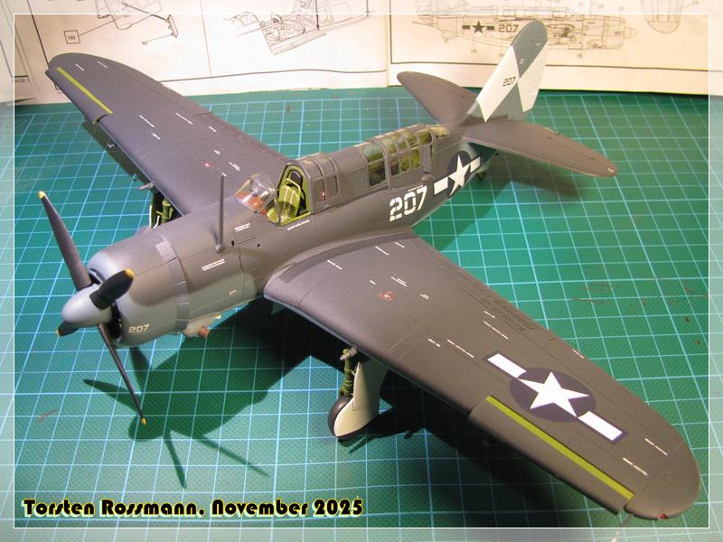 So, after nearly 120 w.i.p. photos, including some from holiday this build comes to an end now. Thanks to everyone who joined me along the way and I hope you’ve enjoyed it. The quarterscale Helldiver is a rare seen built model as I have noticed. At least I have not seen many. And now find your place on the shelf of pride! First show for the SB2C will be in February 2026 in Thionville/France. No more shows for me this year.