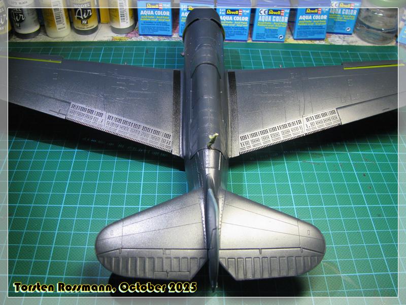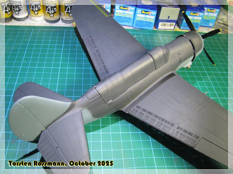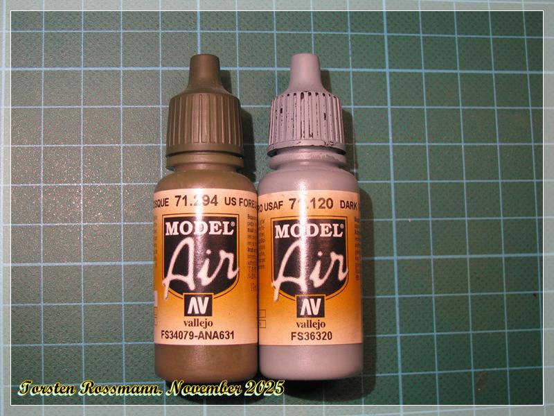 The Tamiya paints you mentioned are exactly what PR suggest. But I’m not into these paints, as they have only a small variety and mixing is often inevitable. So I don’t have these paints. But I checked my (few) Gunze paints and I even found a glass of H309. But it doesn’t sound healthy, means, it has dried out … So I checked the Gunze Colour Chart and noticed FS34079 and FS 36320 for H309 and H307. And I have these with Vallejo Model Air, though their names are completly different to Tamiya or Gunze. So I’ll use these for the J21 and hope to be close enough …