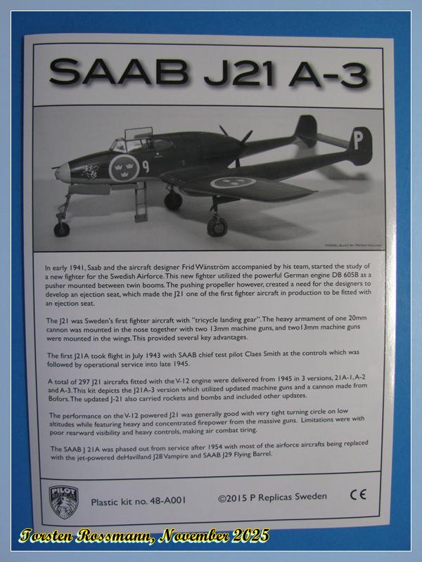 Some of you may know my soft spot for SAAB aircraft and I’ve built quite a few of them in the past, like the Tunnan, Lansen, Draken and Gripen. So it’s time for the SAAB J21 A-3 to join the Tre Kronor Team, don’t you think? The kit comes from Pilot Replicas and is as always in 1/48 …