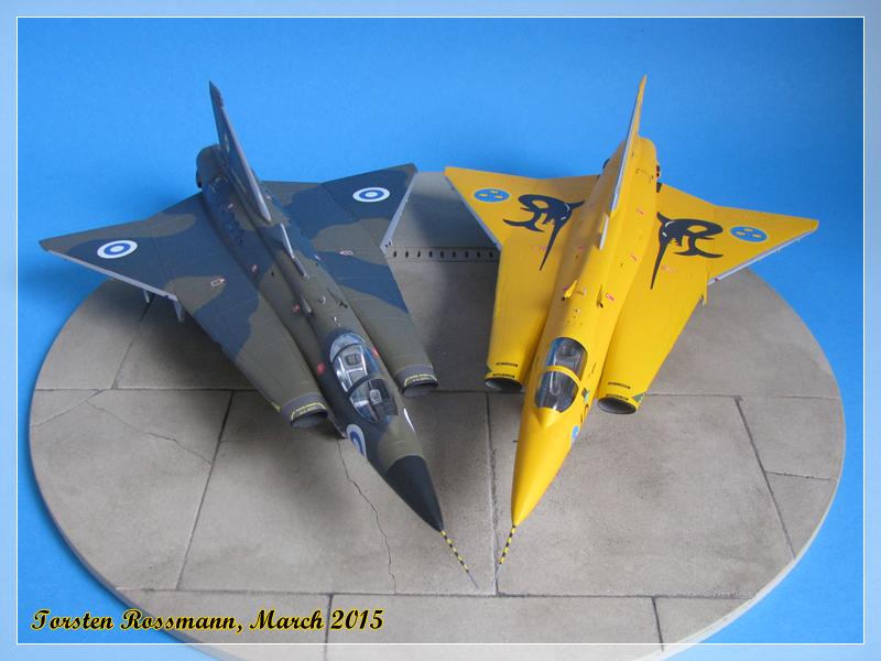 I’m also no SAAB expert (wouldn’t say I’m an expert in any aircraft at all ), I just like their aircraft and as mentioned have built a few of them up to date. Though I’m far more into props I have a favourite jet plane and that is the J35 Draken … Here are my Hasegawa Draken, which I built 2015 and I’ve seen these 2 birds in real already!