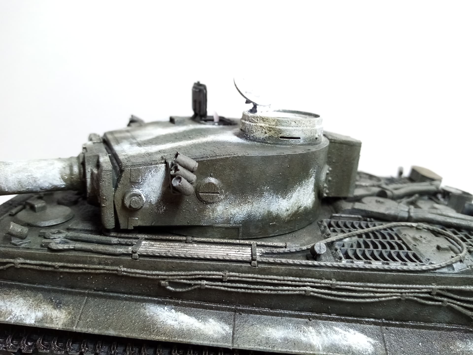 After you pointed out that the Tiger tanks used at Kharkov in 1943 did not have the track spares on the turret, I did some research and decided to remedy this by removing the spares to make the Tiger turret like the “Kharkov” model of the Tiger 1.