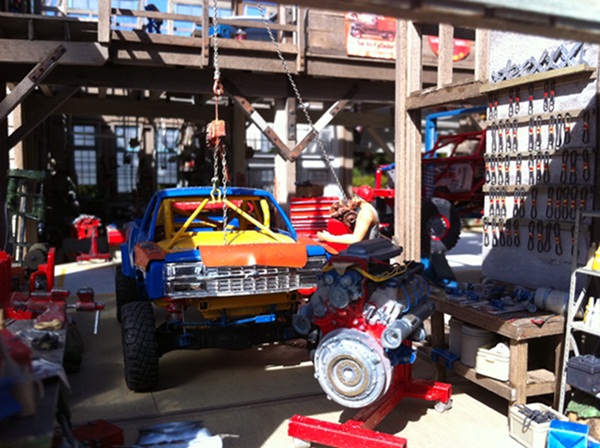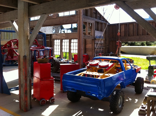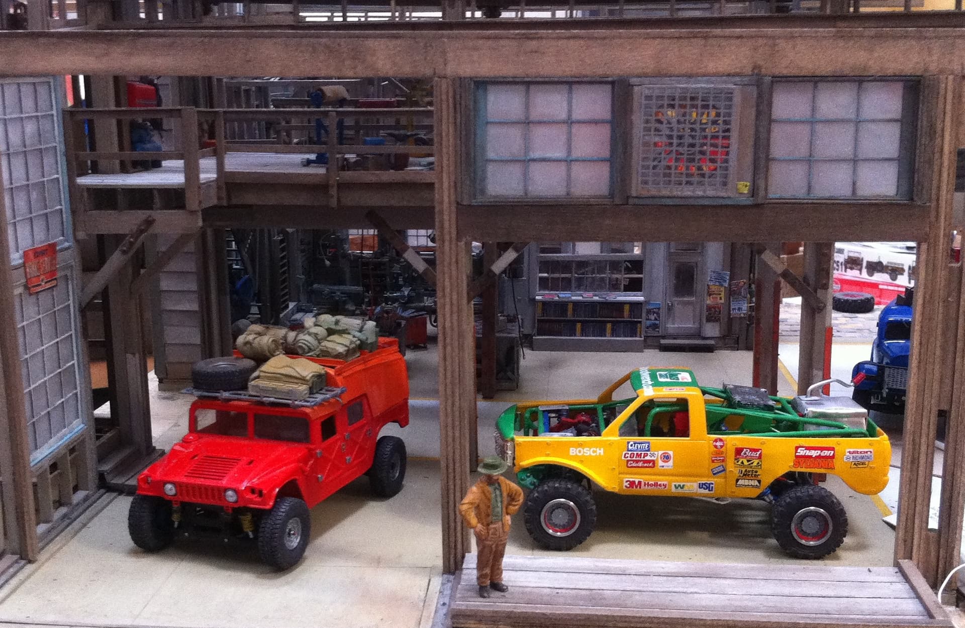 OMG. That off road shop is simply superb, in fact, pretty much beyond description.Every detail or area is just just full of so much real life detail … to much for my head to handle ( I love the wall with the spare drive belts hanging from it …) I have been looking at the images for ages and I still keep finding fantastic bits of attention to detail …
