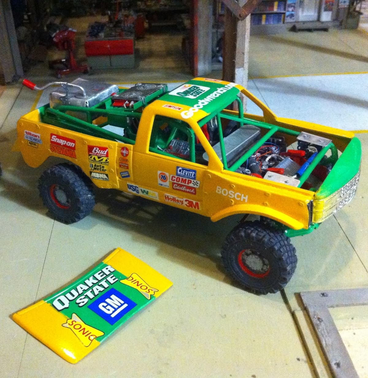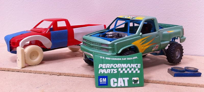 Yes - an old AMT 1/32 monster truck kit body from the junk box, converted into something like the truck on the right, less the extra cab .