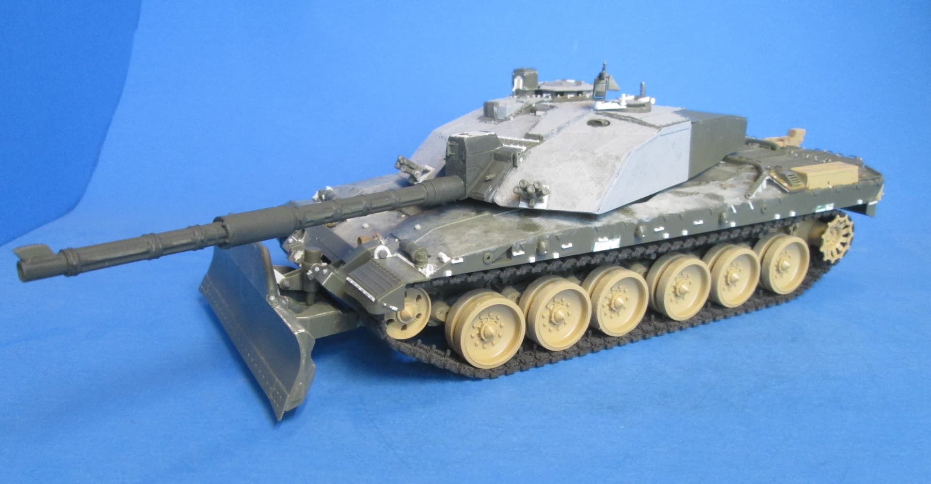 Here are a couple of pictures showing the formerly called UDK-1 fitted to a Challenger 1Mk3. The pictures were taken from a vehicle that shortly before came back from GW1. The system is fully boxed. No powerlines or hydraulics visible. Electric connection goes over a plug behind a circle shaped plate which is located in the hull front and when the blade is carried, is behind the mounting plate. I guess the same blade kits also were used with Challenger 2.
