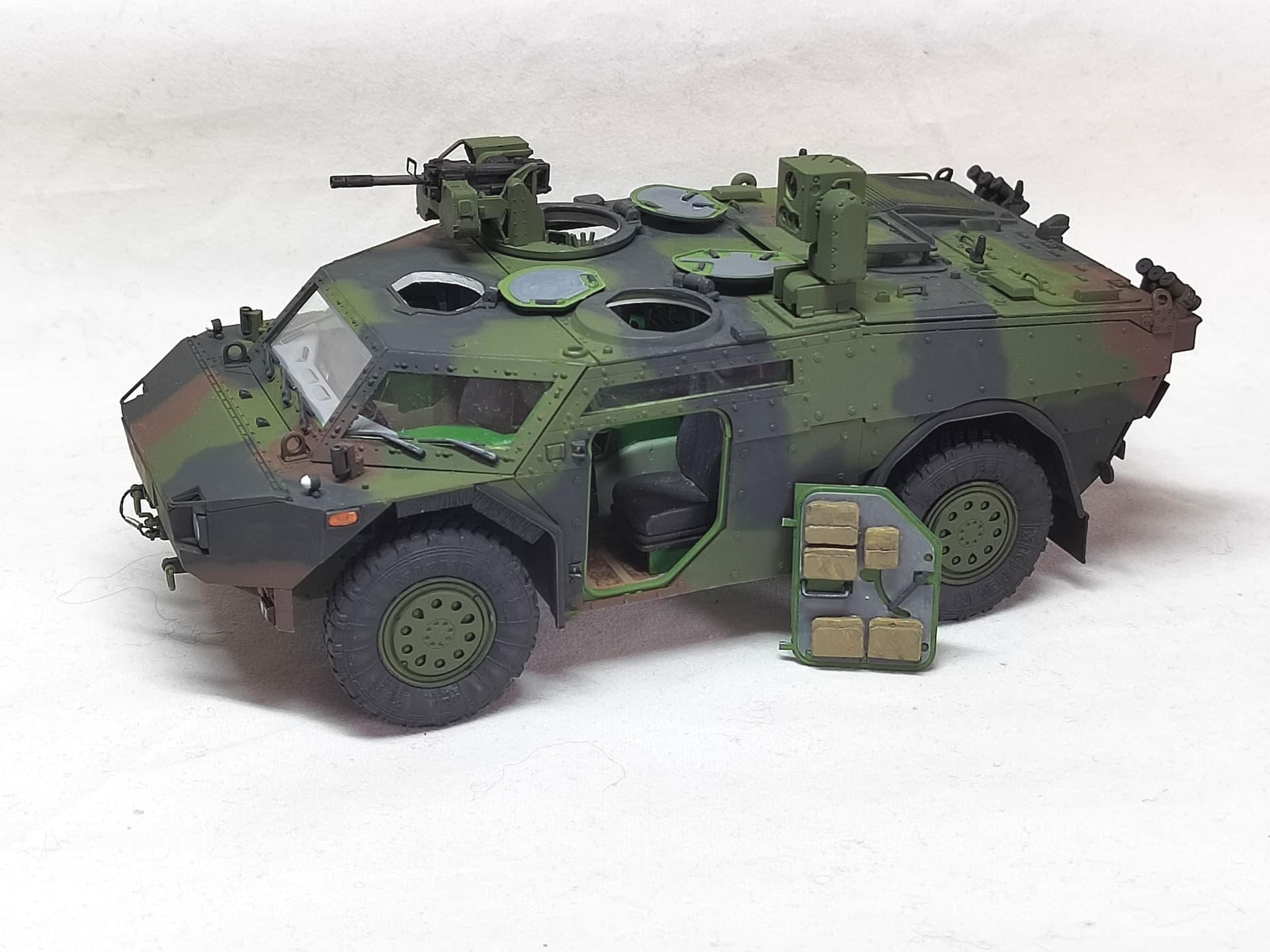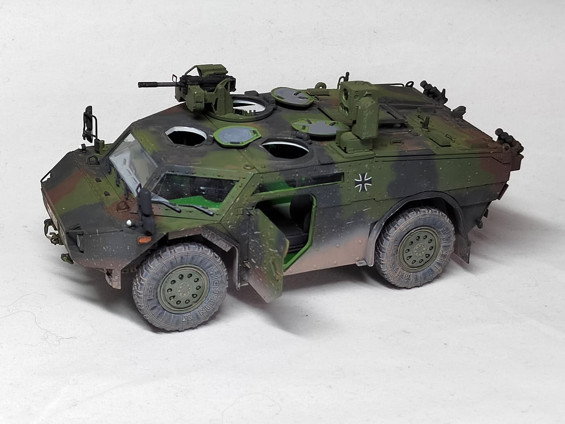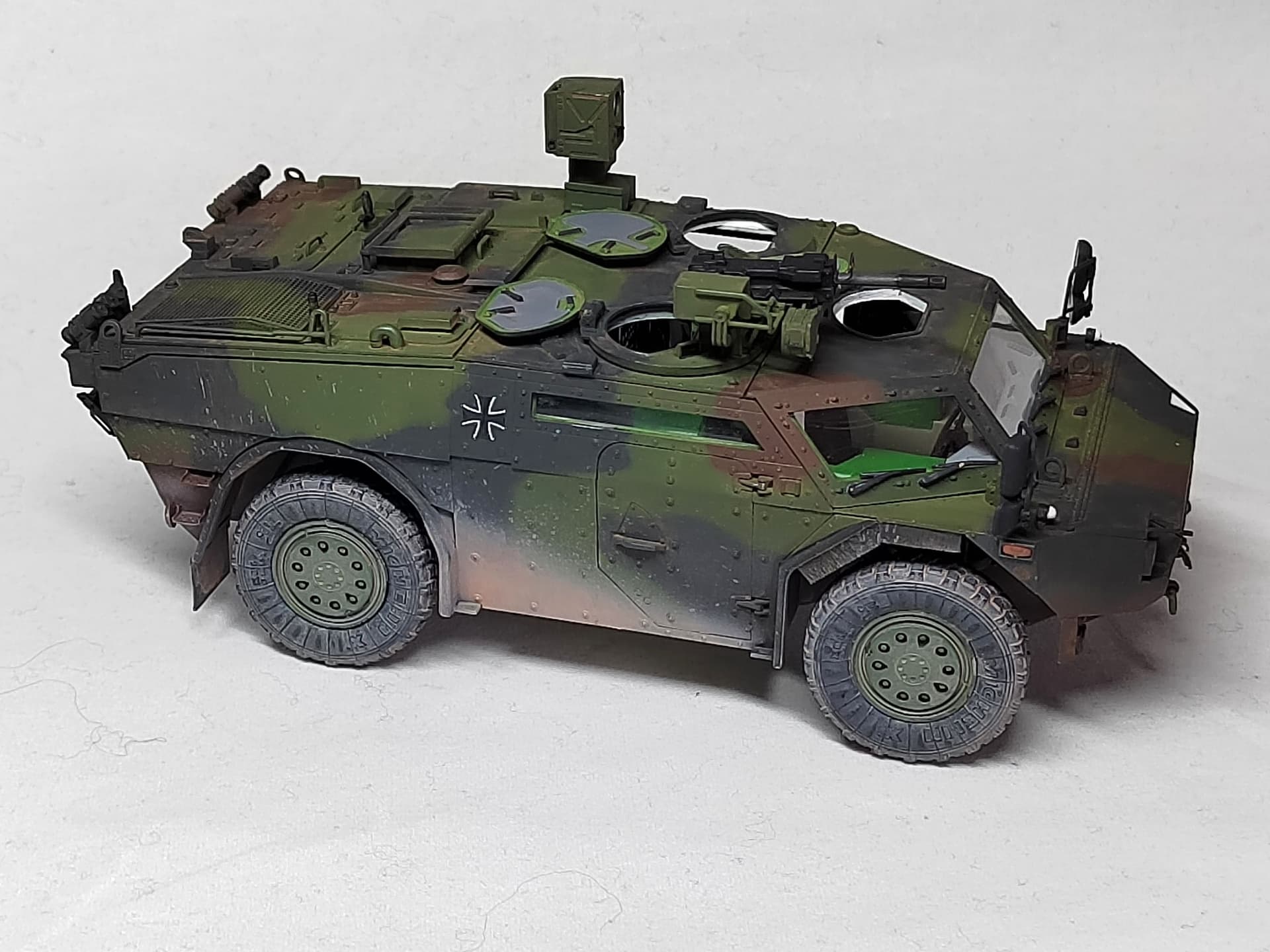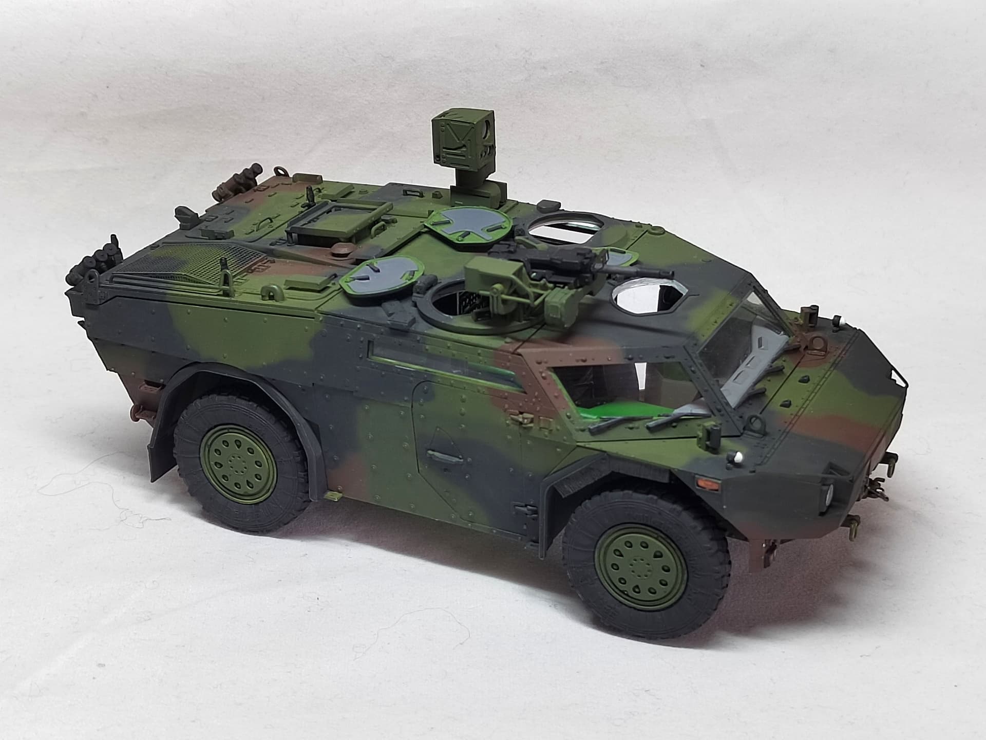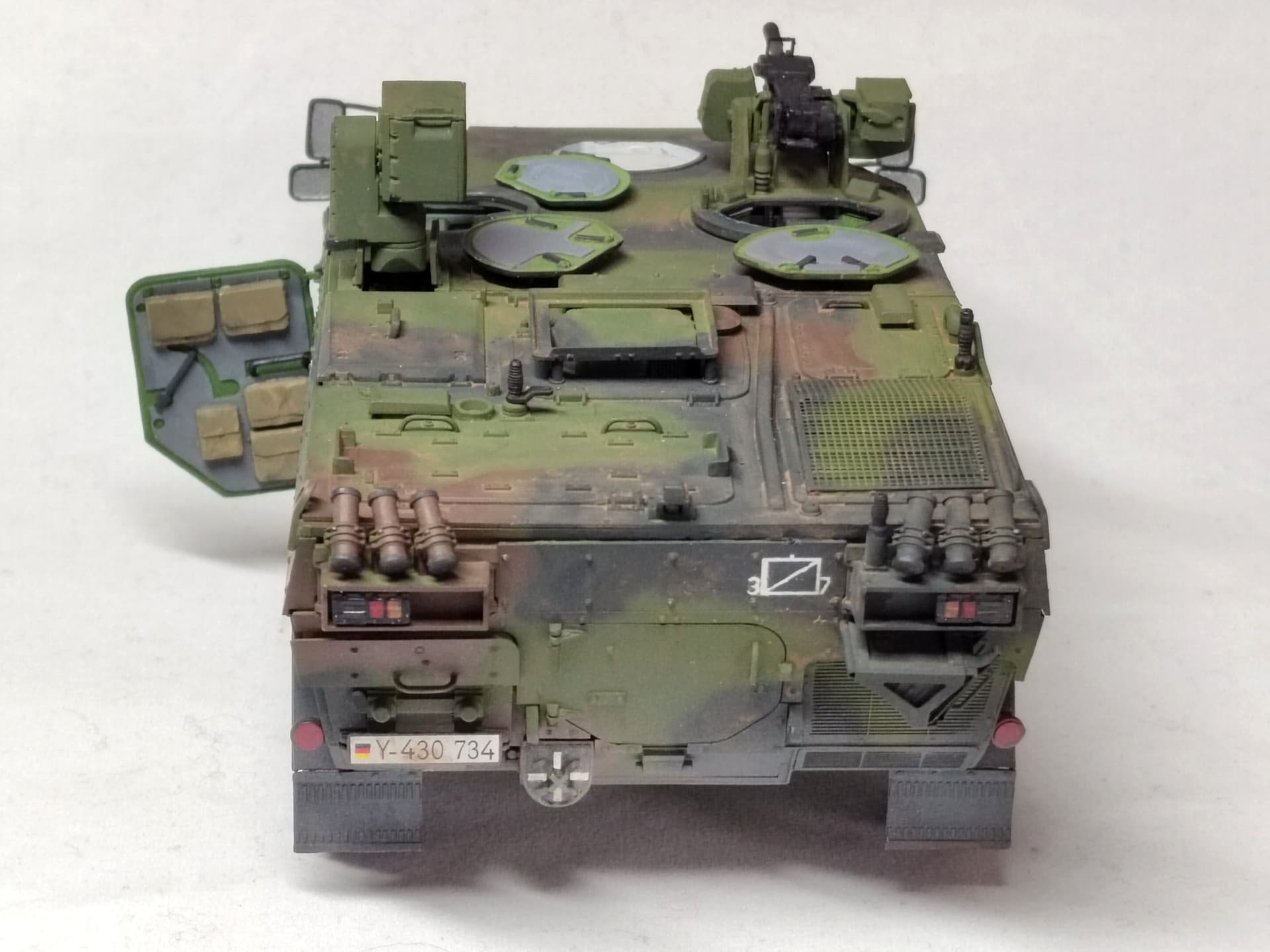 I have used the registration plates and the German crosses from the kit and NATO unit markings from the old Revell Luchs kit. I had to paint over the oval oof the armored cavalry.