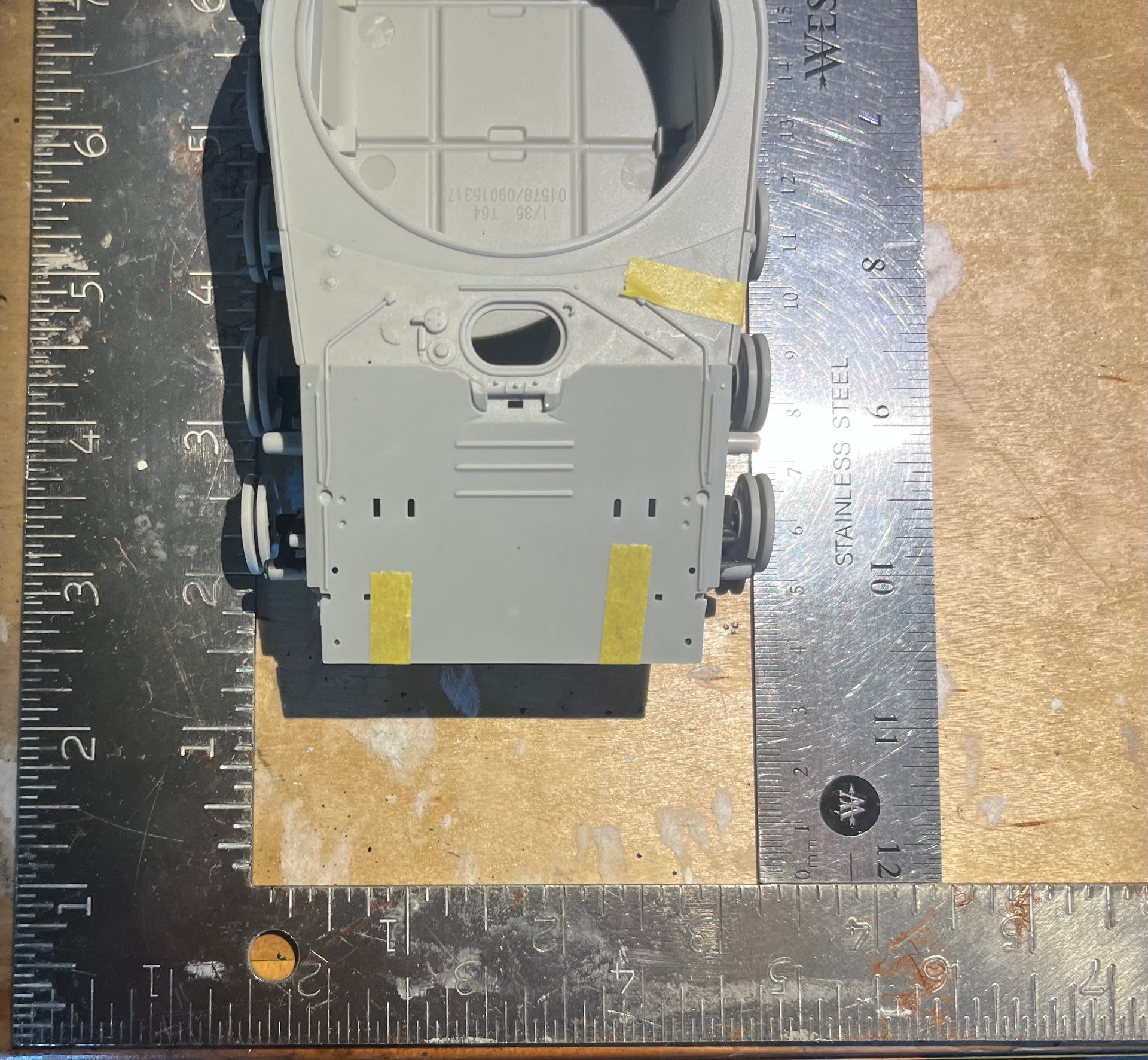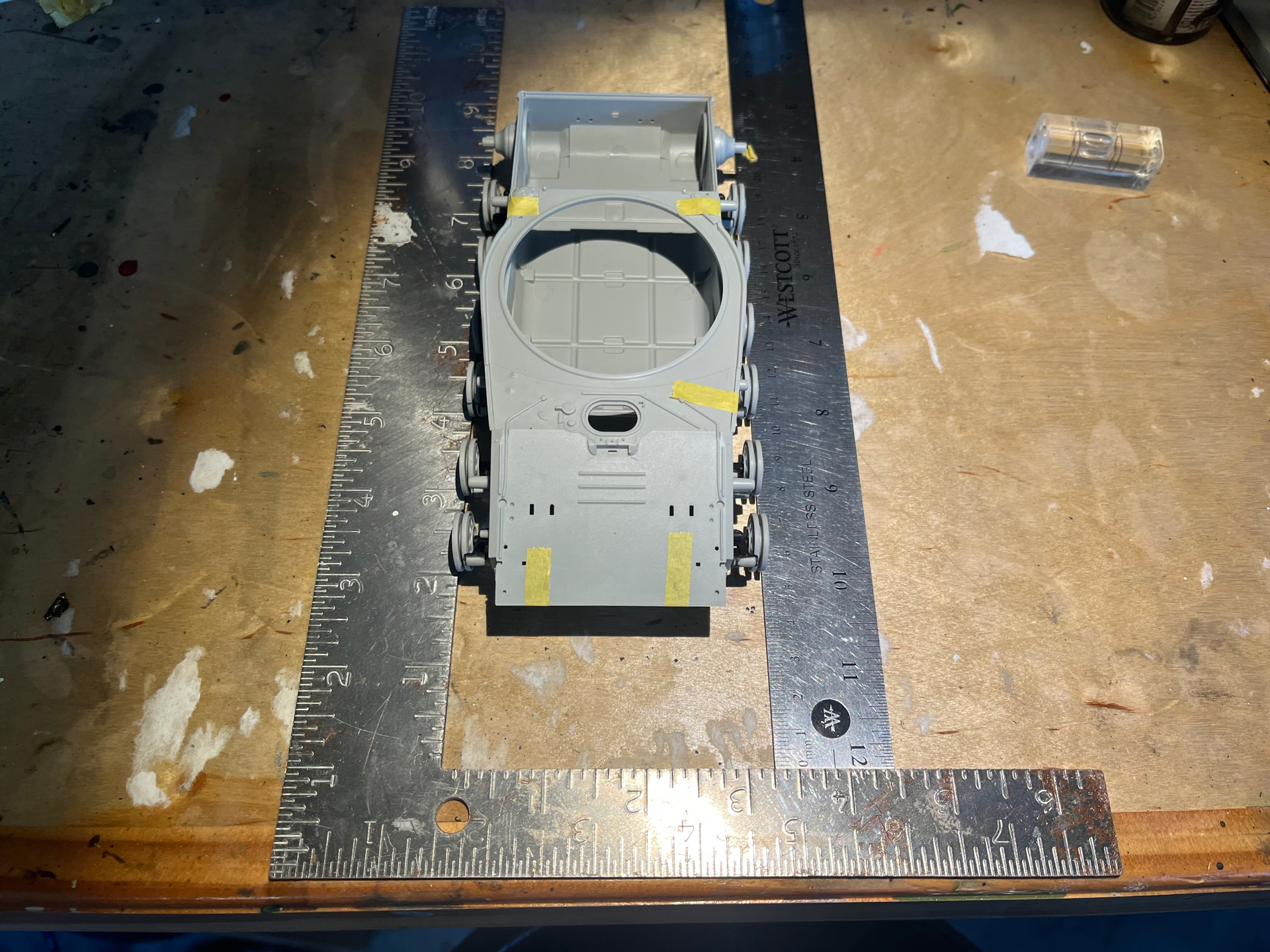 Also taped the top hull plate in place. My hull was slightly warped and putting the top hull plate on squared it up