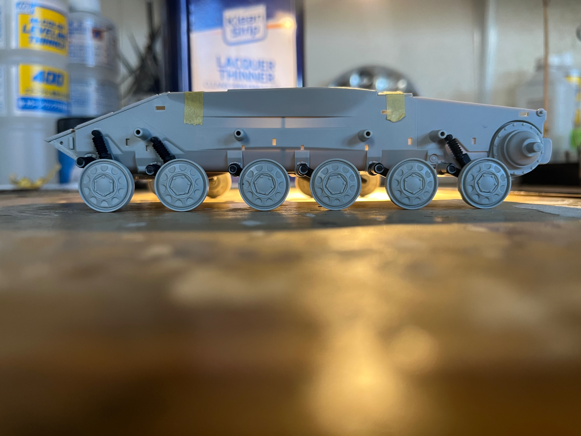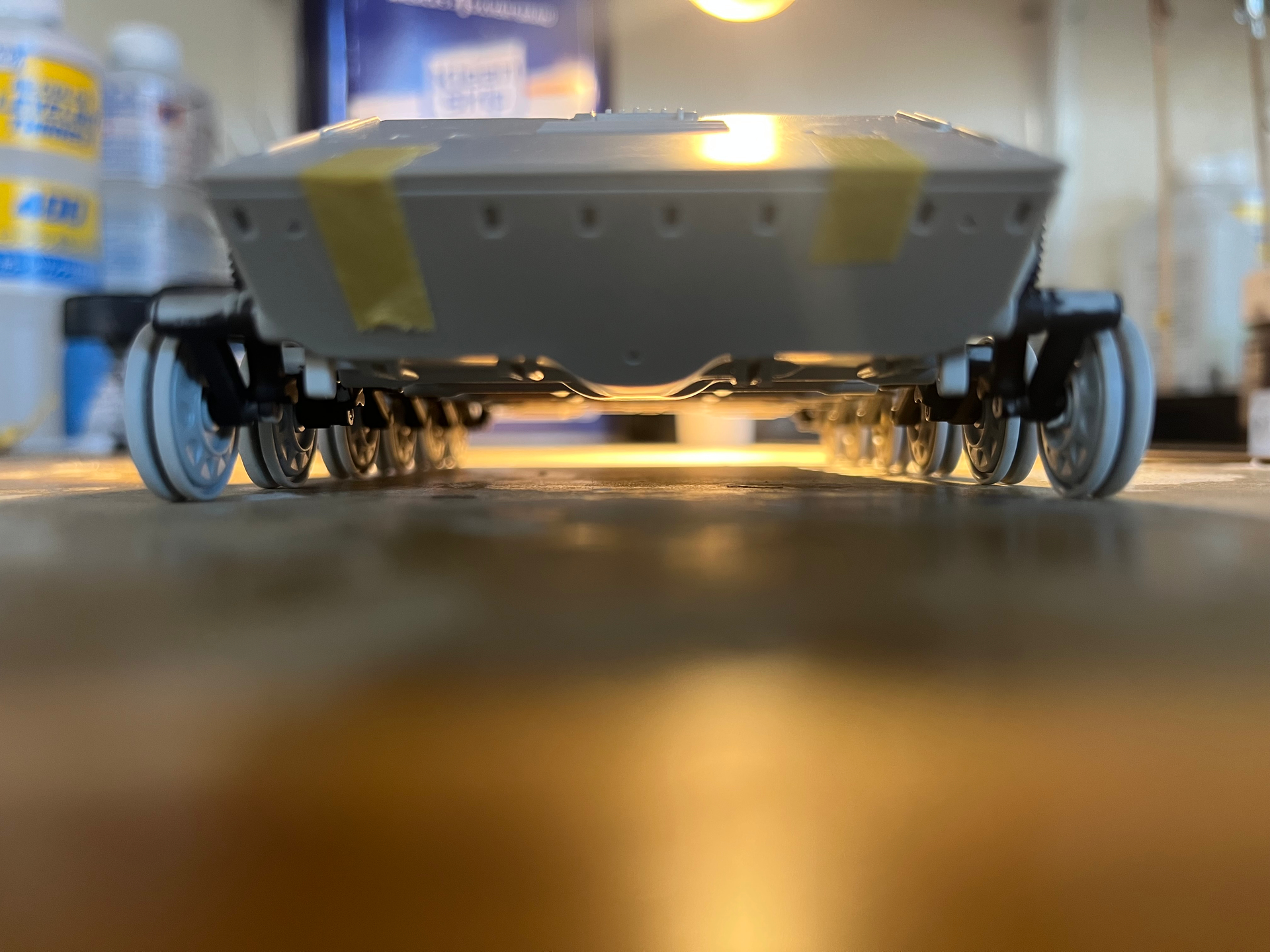 I got all the suspension arms cleaned up and dry fit, and like half of them don’t touch the ground in a random fashion. They are keyed, so I know they aren’t on the wrong side and I was very careful to use the right arm in the right place cutting only one off the sprue at a time.