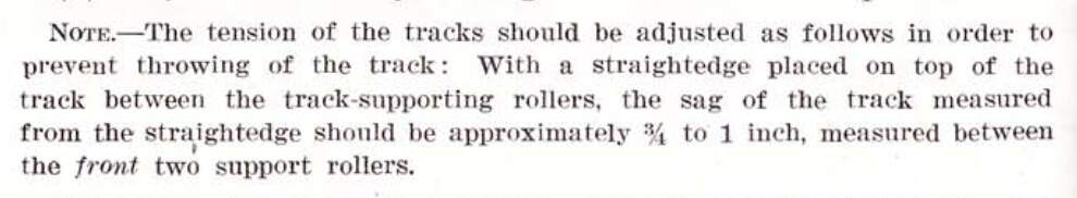 This is from page 102 of TM 9-750 Medium Tanks M3, M3A1, and M3A2 of 9 May 1942. Translated to 1:35, sag between the front two return rollers should be between one-half and three-quarters of a millimetre — in other words, just pull the track tight around the wheels.