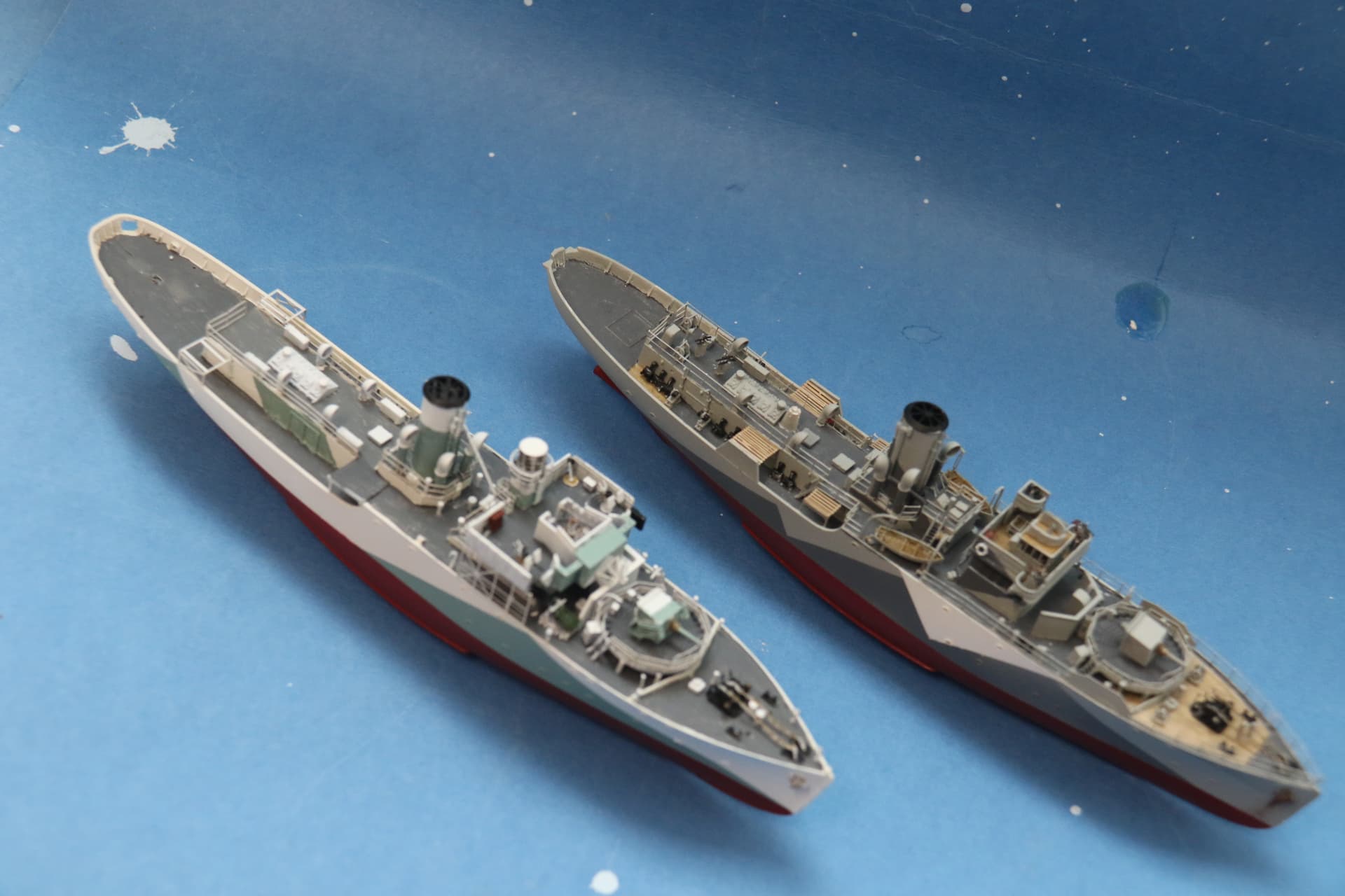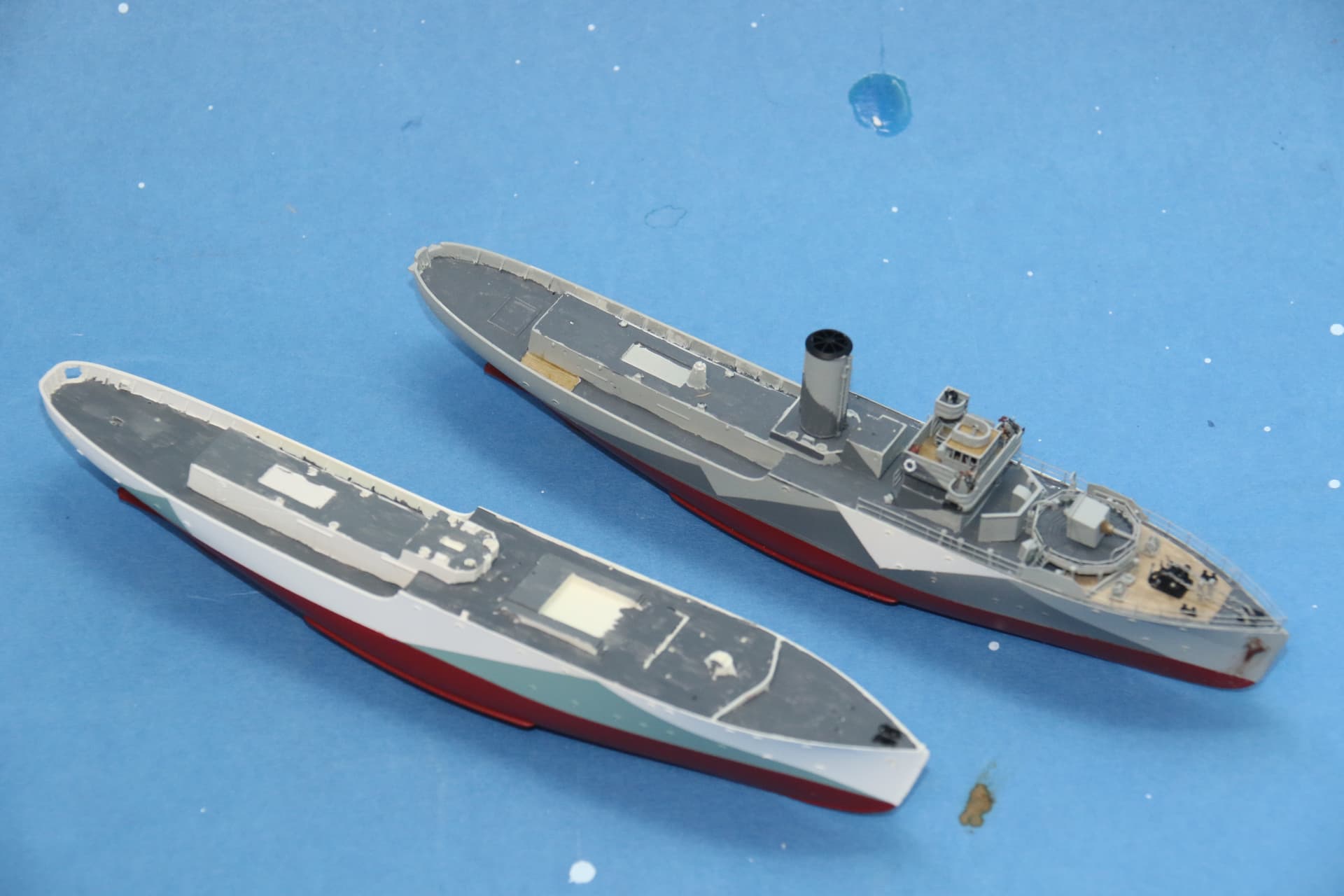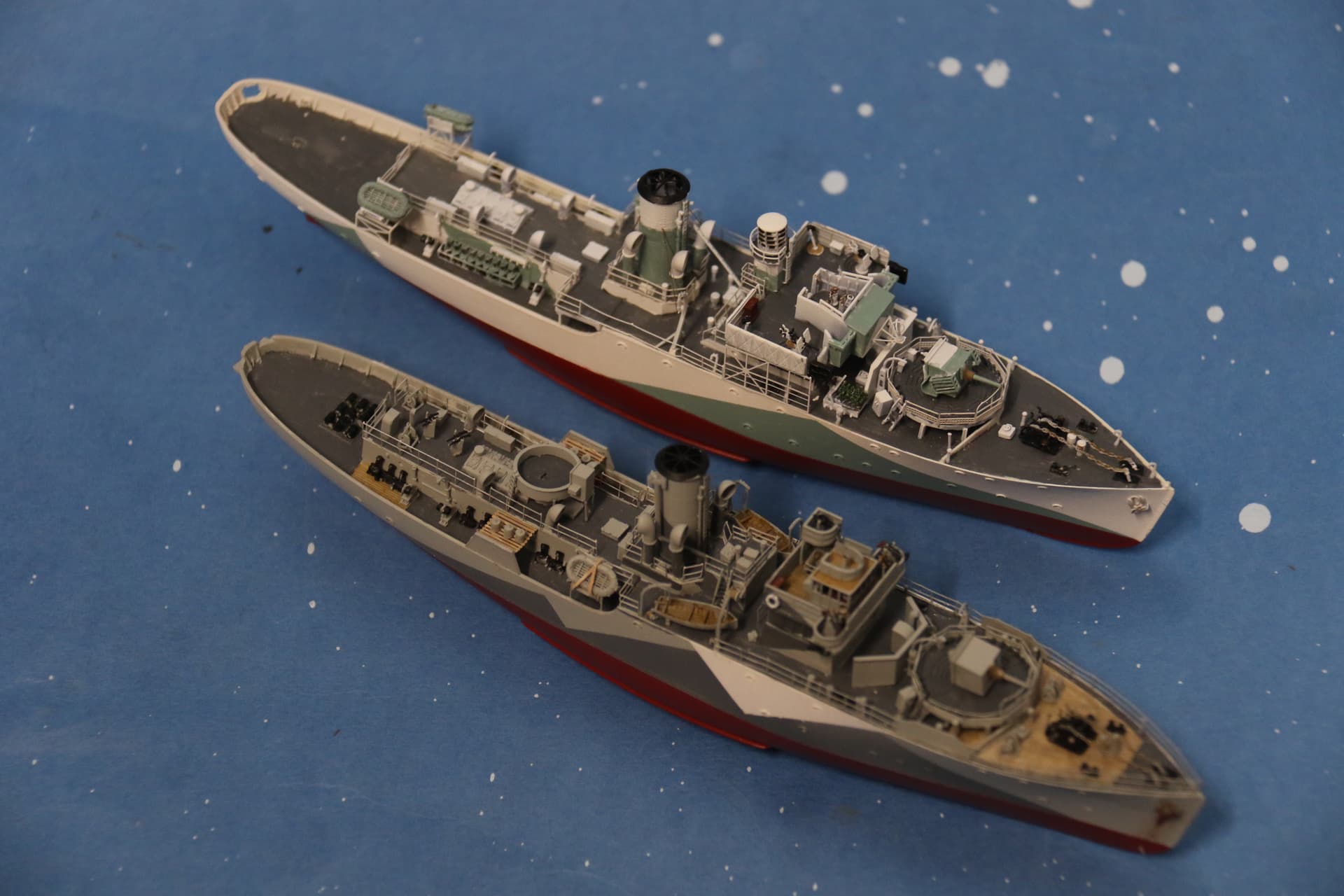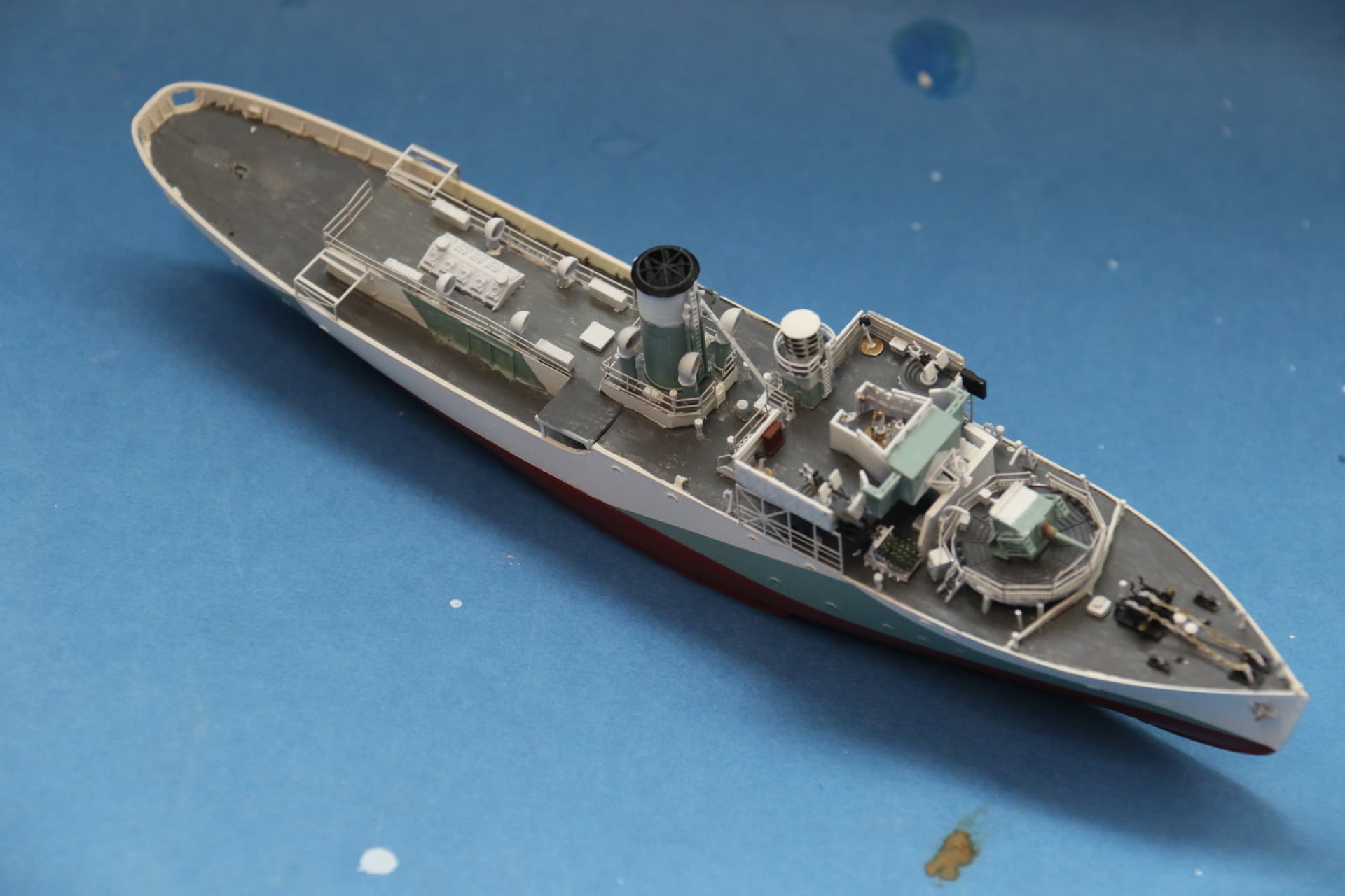 Not a problem, exhibit as yet unnamed has a more squared off stern as she was originally fitted with mine-sweeping gear, build will represent her after the mine sweeping gear had been removed, and she had rebuilt with a long fo’c’s;le.