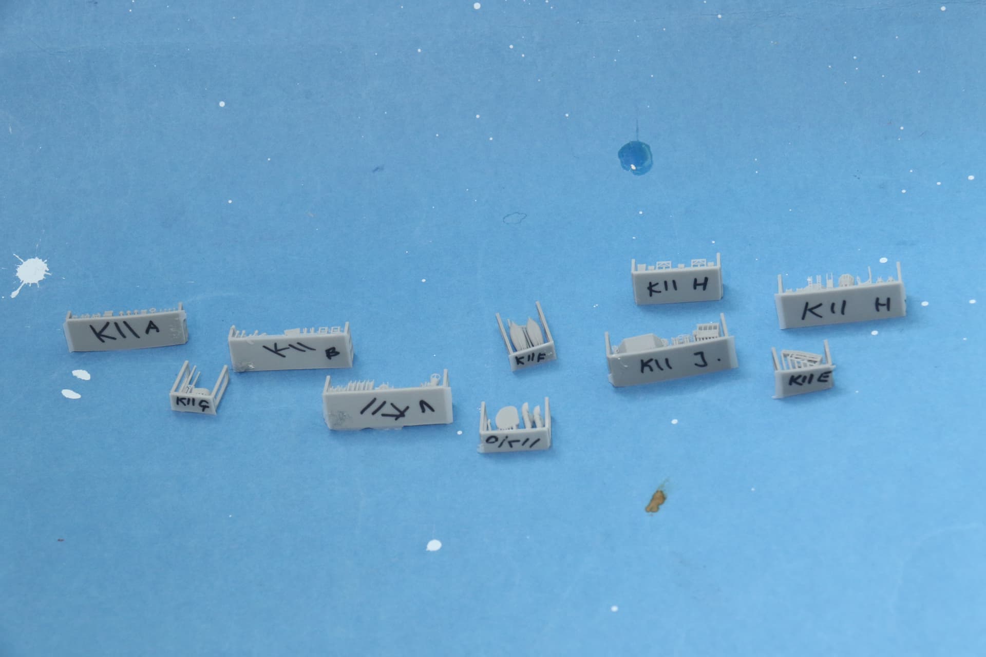 I have started on the construction, not enough yet for an update. This did involve removing the plaques of 3D printed parts from their little boxes, one thing I learnt from the Agassiz build, in the instruction each plaque is given a letter, so as I removed each plaque I wrote it’s letter on the underside. On this build as their will be a second corvette I added the pennant No. so i don’t mix them up.