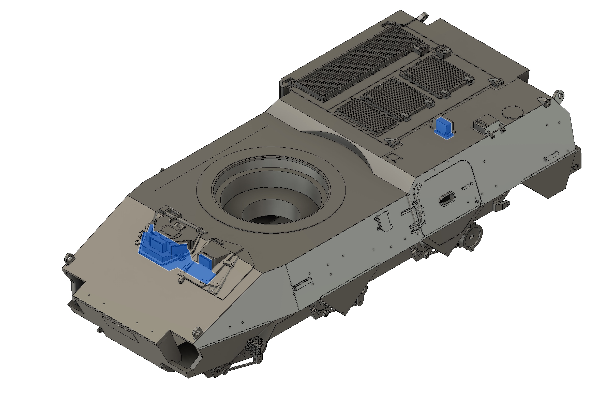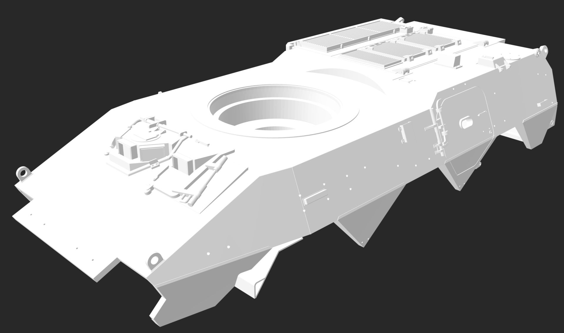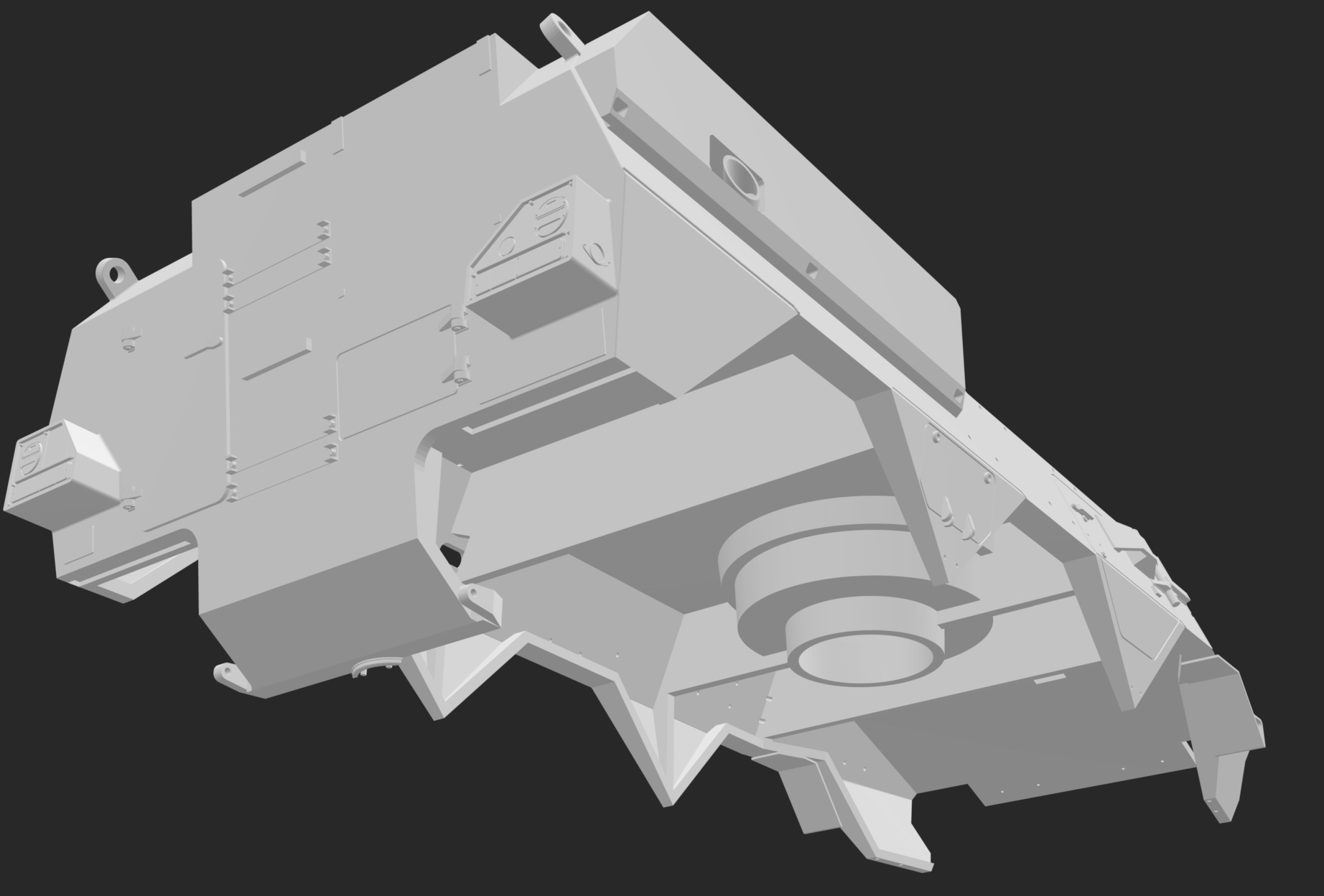 By splitting the hull & turret into uppers & lowers, I was able to reverse some design compromises baked into my one piece designs. More specifically, I can now easily add clear/translucent vision blocks/episcopes/periscopes from underneath.