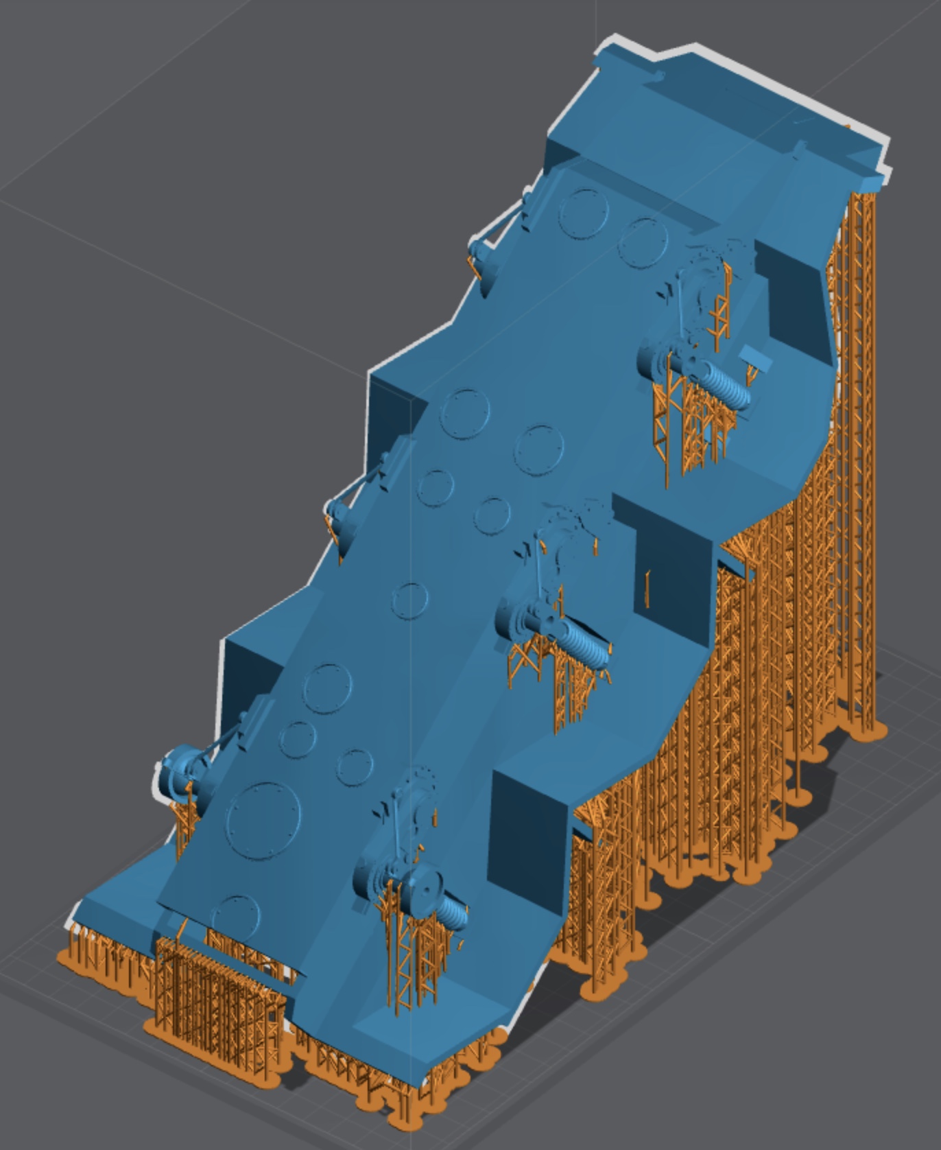 I’m trouble shooting atm, with options including splitting the upper hull roughly in half so there’s sufficient room to orient the model to the built plate more aggressively.