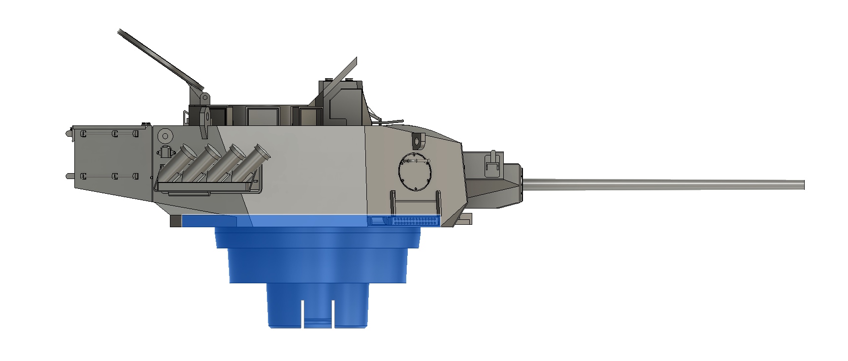 The blue part is the lower turret piece. May have to extend the lower piece to include the underside of the bustle.