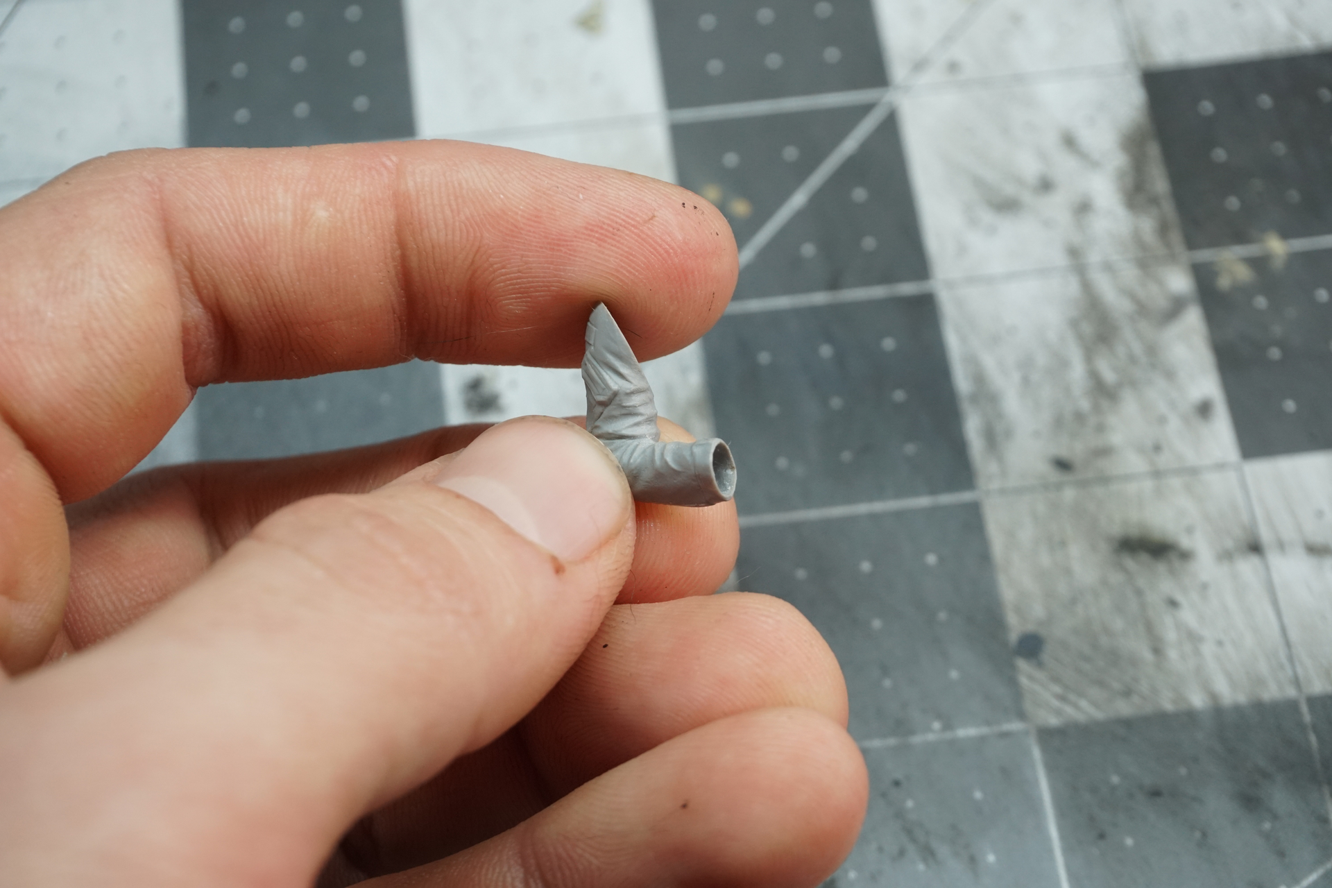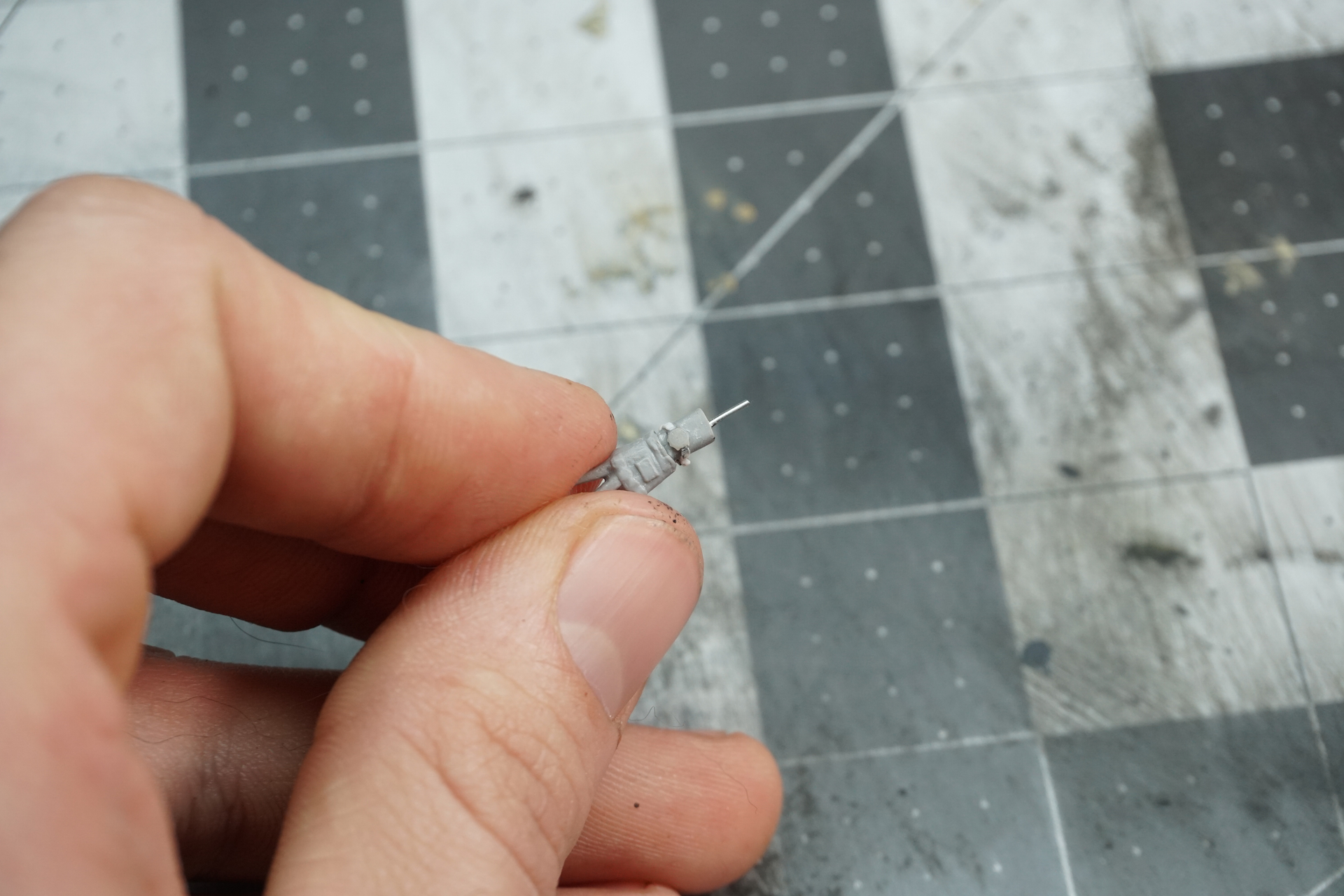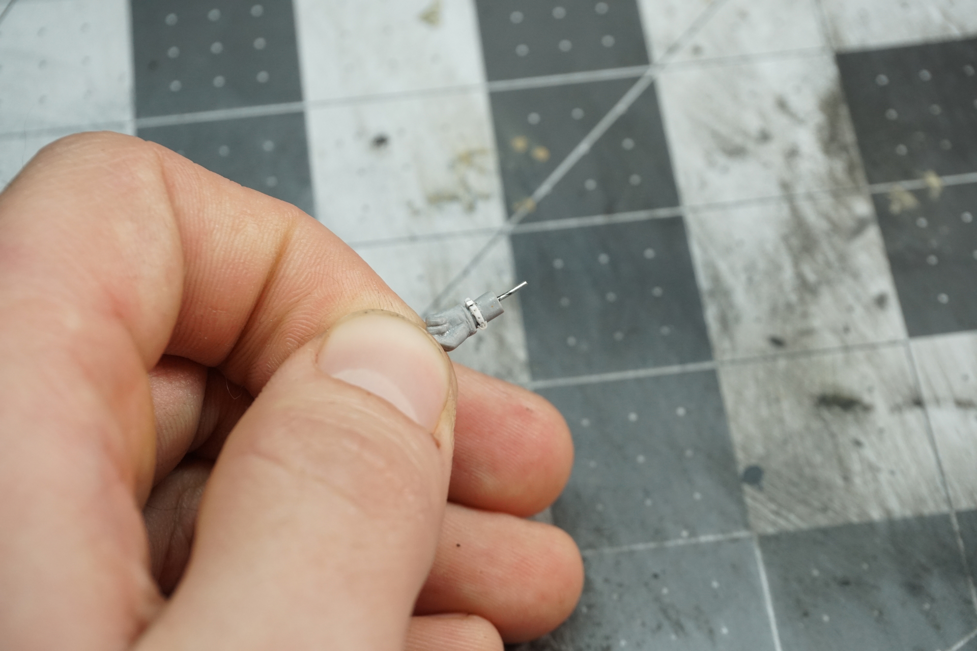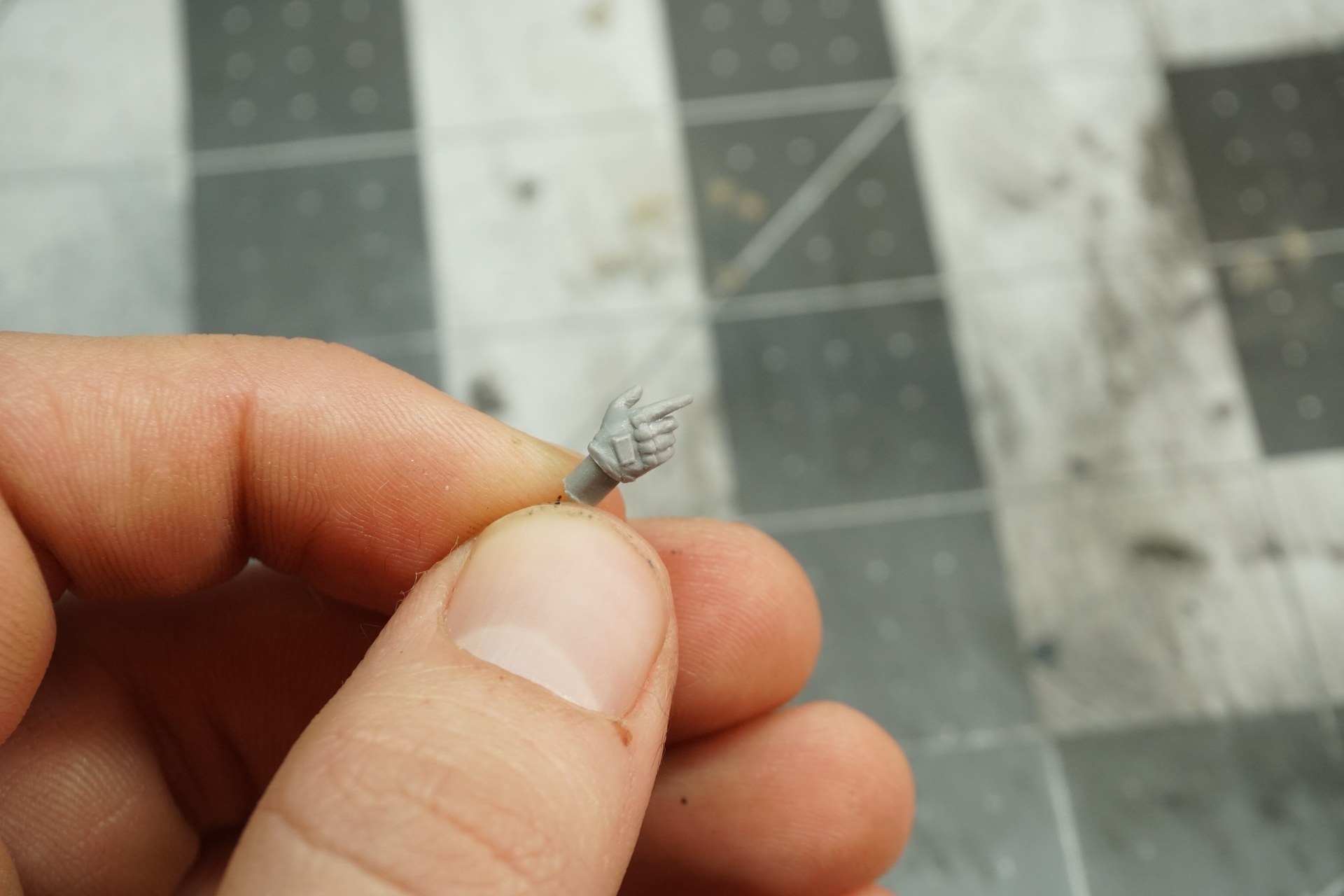 The arms got some work done with getting the hands cut off and adding forearms with spare sprues. I then hollowed out the sleeves, cleaned up the fingers, and added a 3D printed watch with a styrene strap.