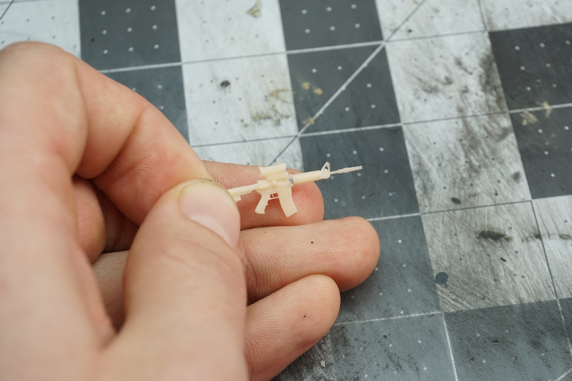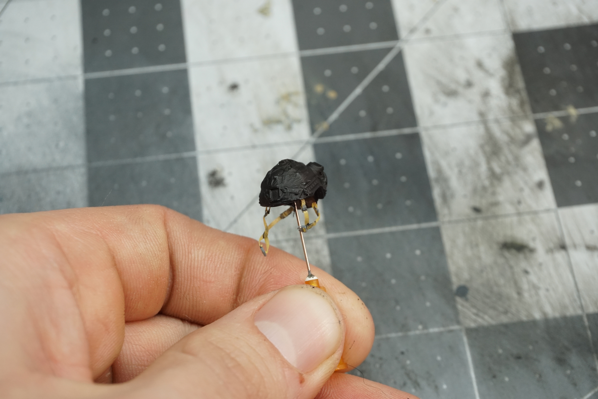 I also 3D printed a helmet, and using Tamiya tape and some tiny 3D printed strap buckles, which ended up being fully functional.