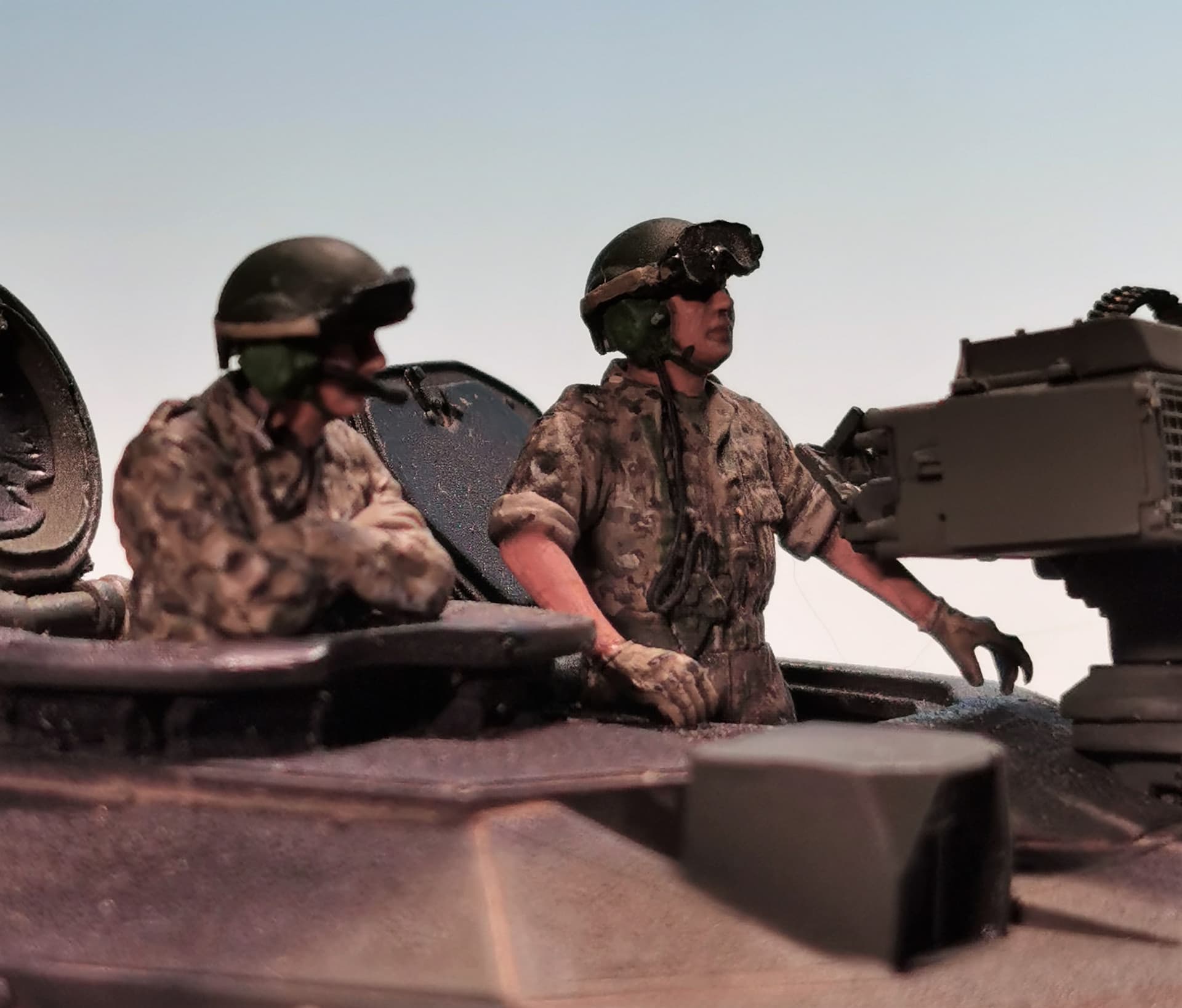 Thomas I don’t see what you’re disappointed about at all. I think the finished look is outstanding. The camo is perfect and the dust effect is magnificent. The figures are very well done. I think you have produced an excellent model.