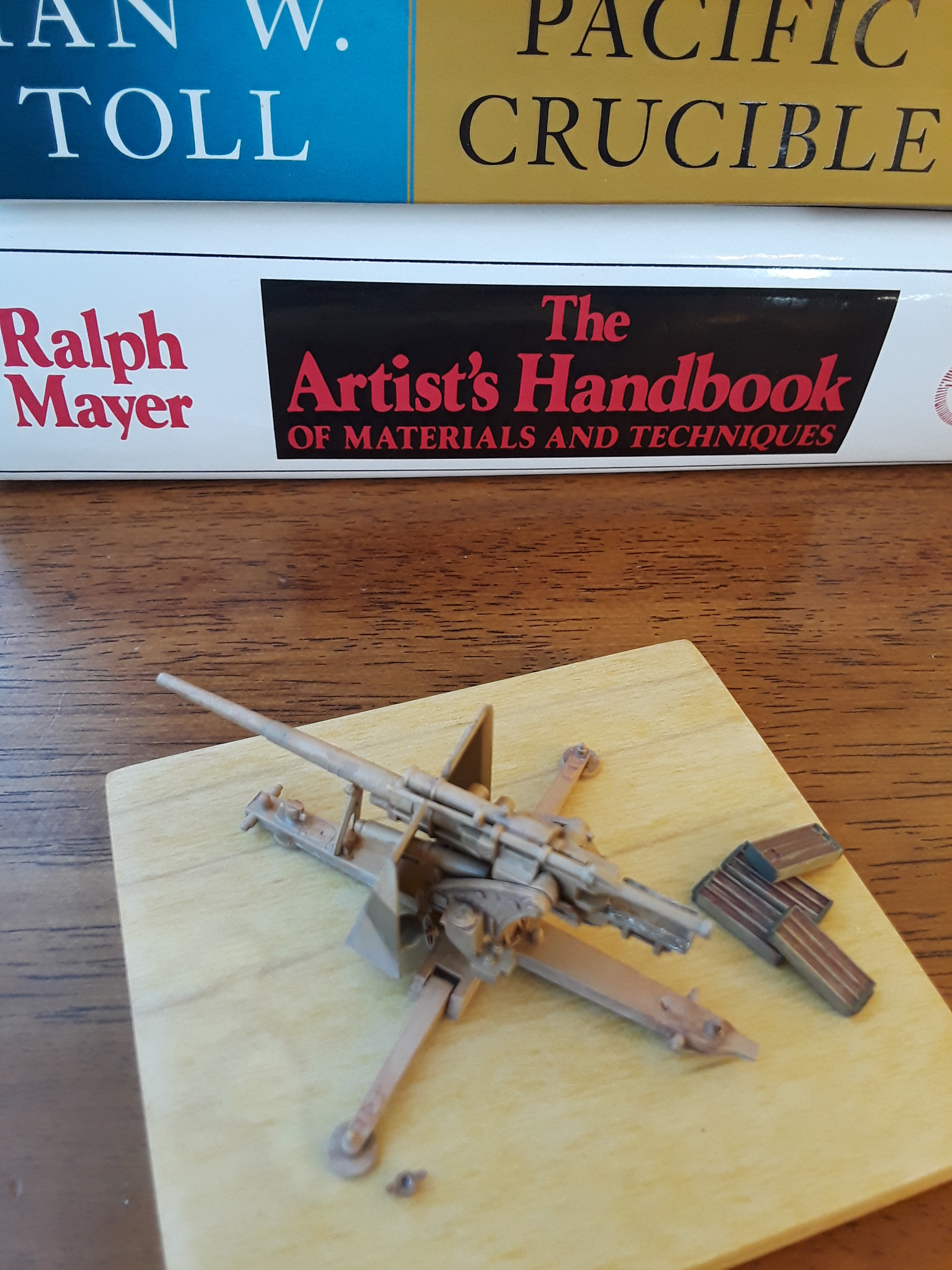 I didn’t finish last year’s shelf queen: Flak 18, 1/72 scale by Hasegawa. Still not satisfied with the wicker ammo crates. Does anyone if they would be on the left or right side of the gun?