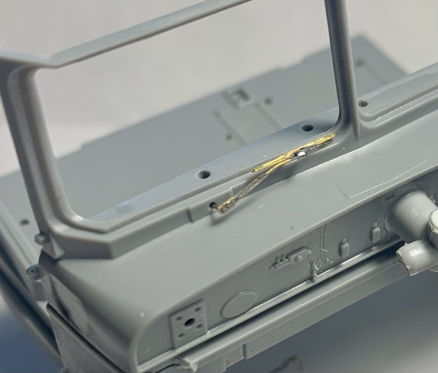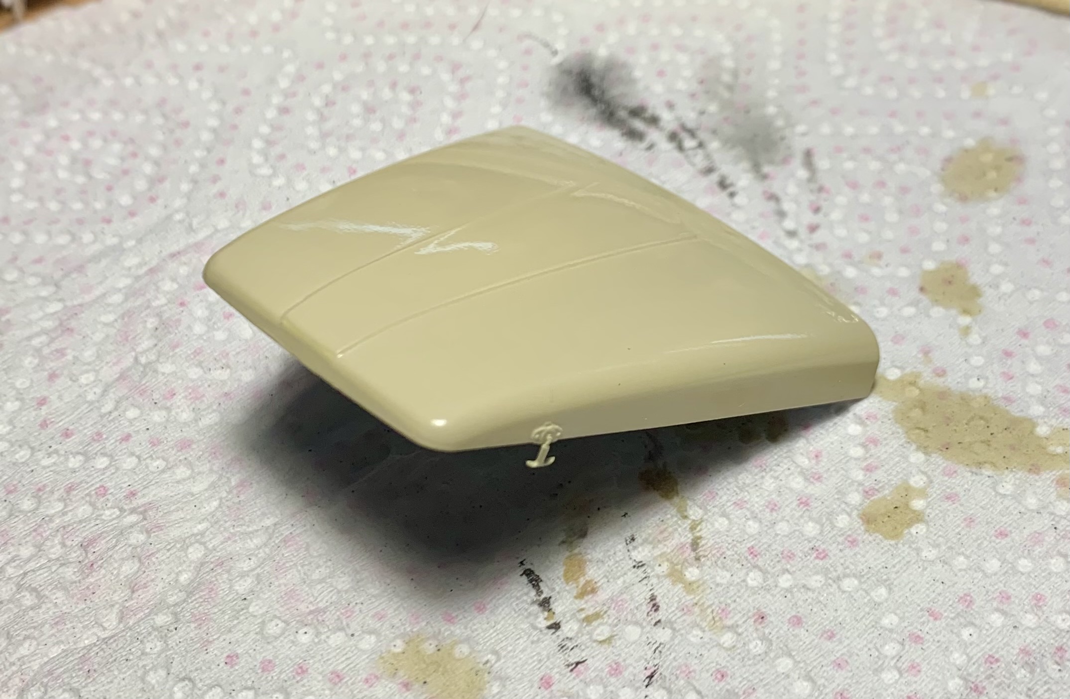 I started painting. Color: Beige 235. Next, a semi-gloss varnish and, perhaps, some weathering marks.