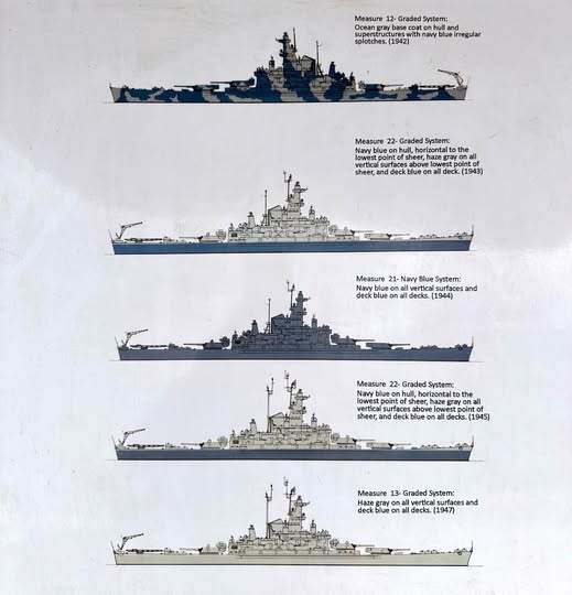 Littorio is correct. My recent trips to the Intrepid and Alabama show them in all gray only because the ships were painted all gray.