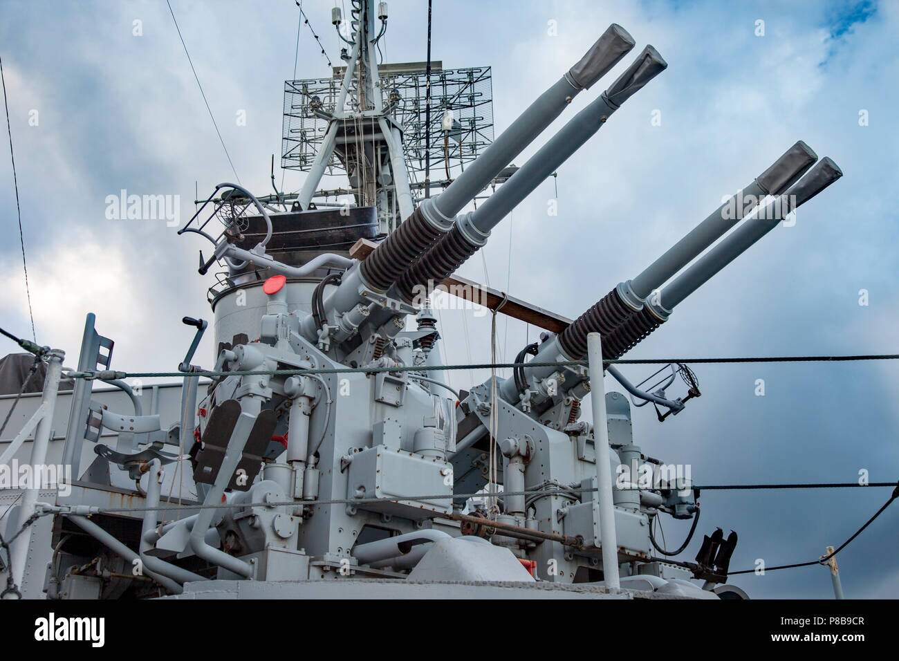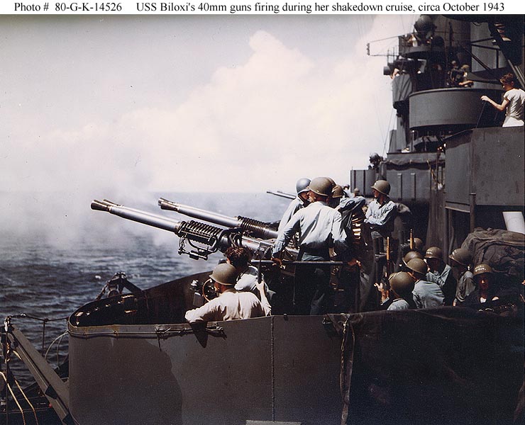 Unless he is building them to represent a specific ship at a given time, I would still go with an overall battleship gray for a generic dual 40mm Bofors mount.