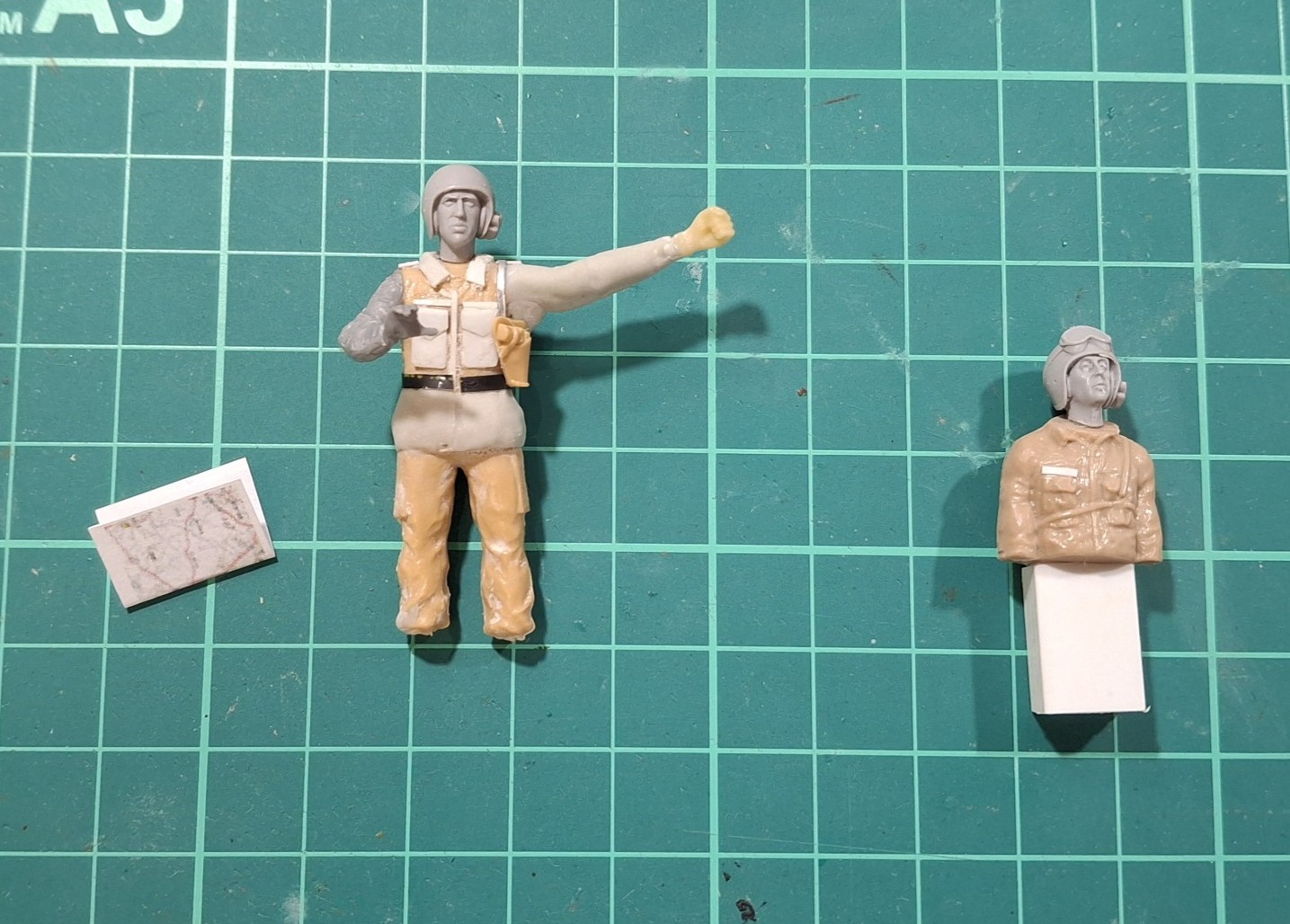 While I’m still mulling over whether or not to tackle packs, a bit more work on the figures; heads now secured though a little Mr Dissolved Putty required to touch up a bit, and the Commander figure has acquired another arm: