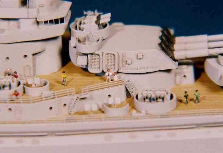 On my Massachusetts build there are lots of people on board - even women and children! These unexpected, non-uniformed characters in bright clothing really help sell the museum ship narrative.
